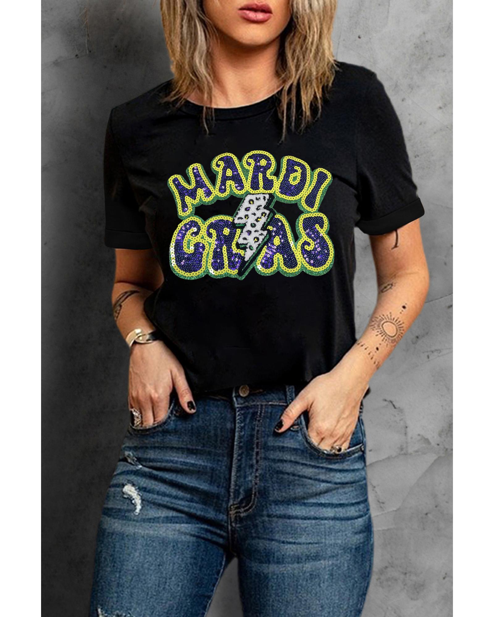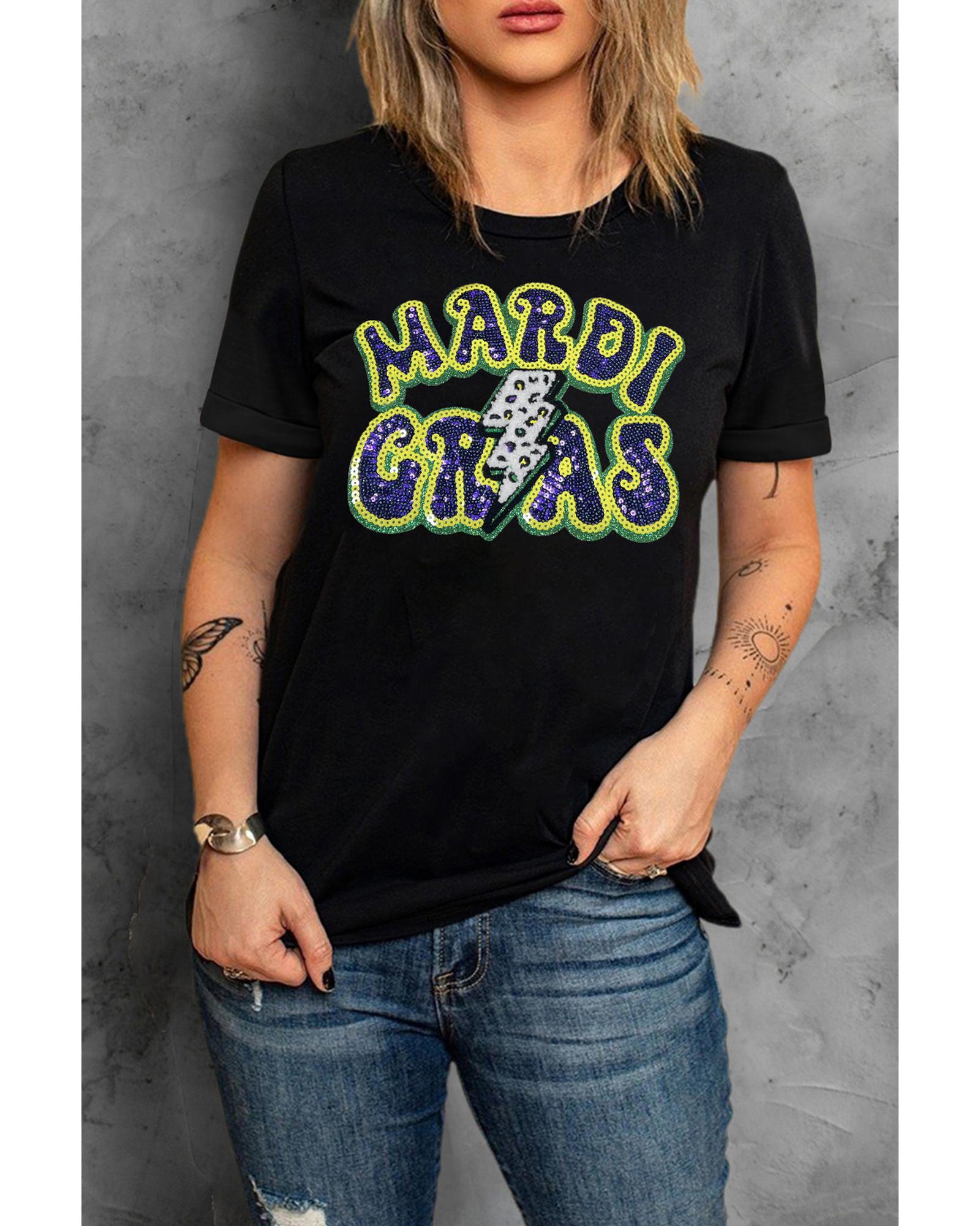Black MARDI GRAS Lightning Graphic Short Sleeve Top – L
