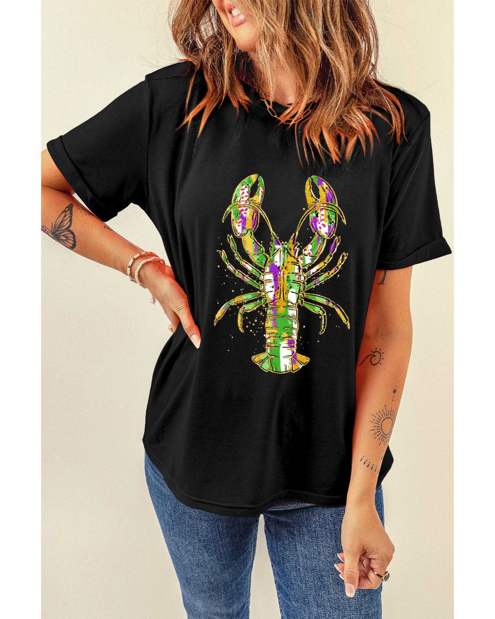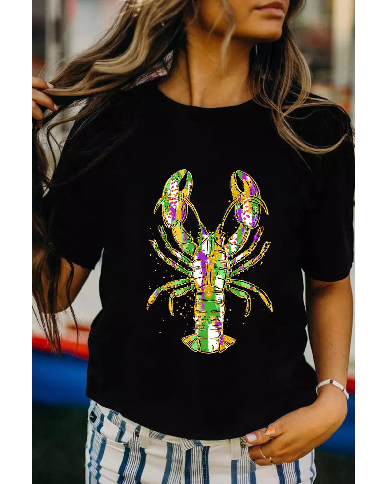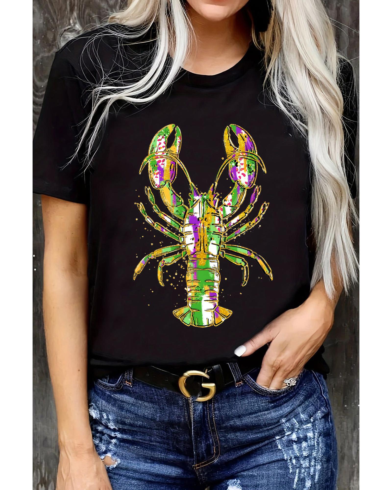 Black Mardi Gras Lobster Heat Transfer Graphic T Shirt – M