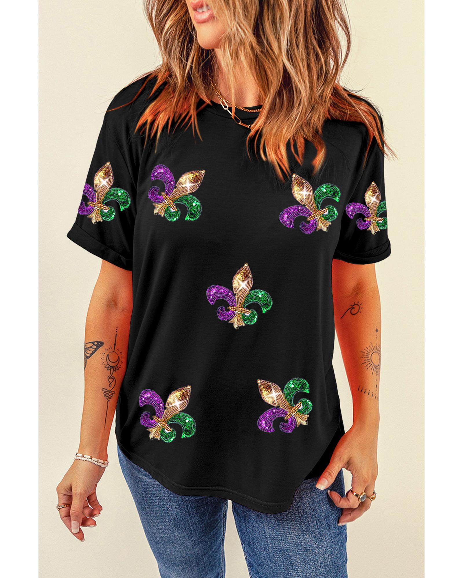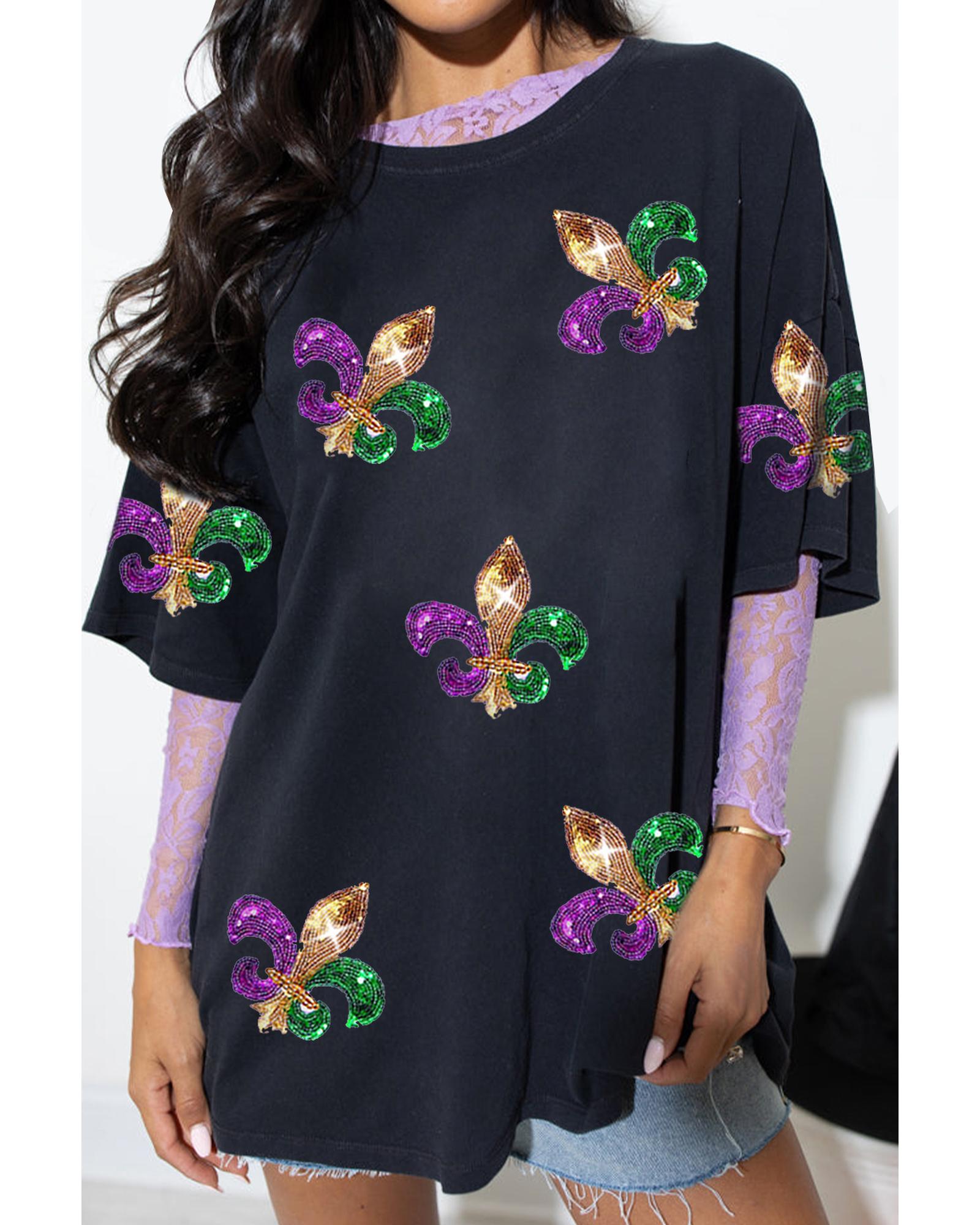 Black Mardi Gras Symbol Patched Crewneck T Shirt – XL