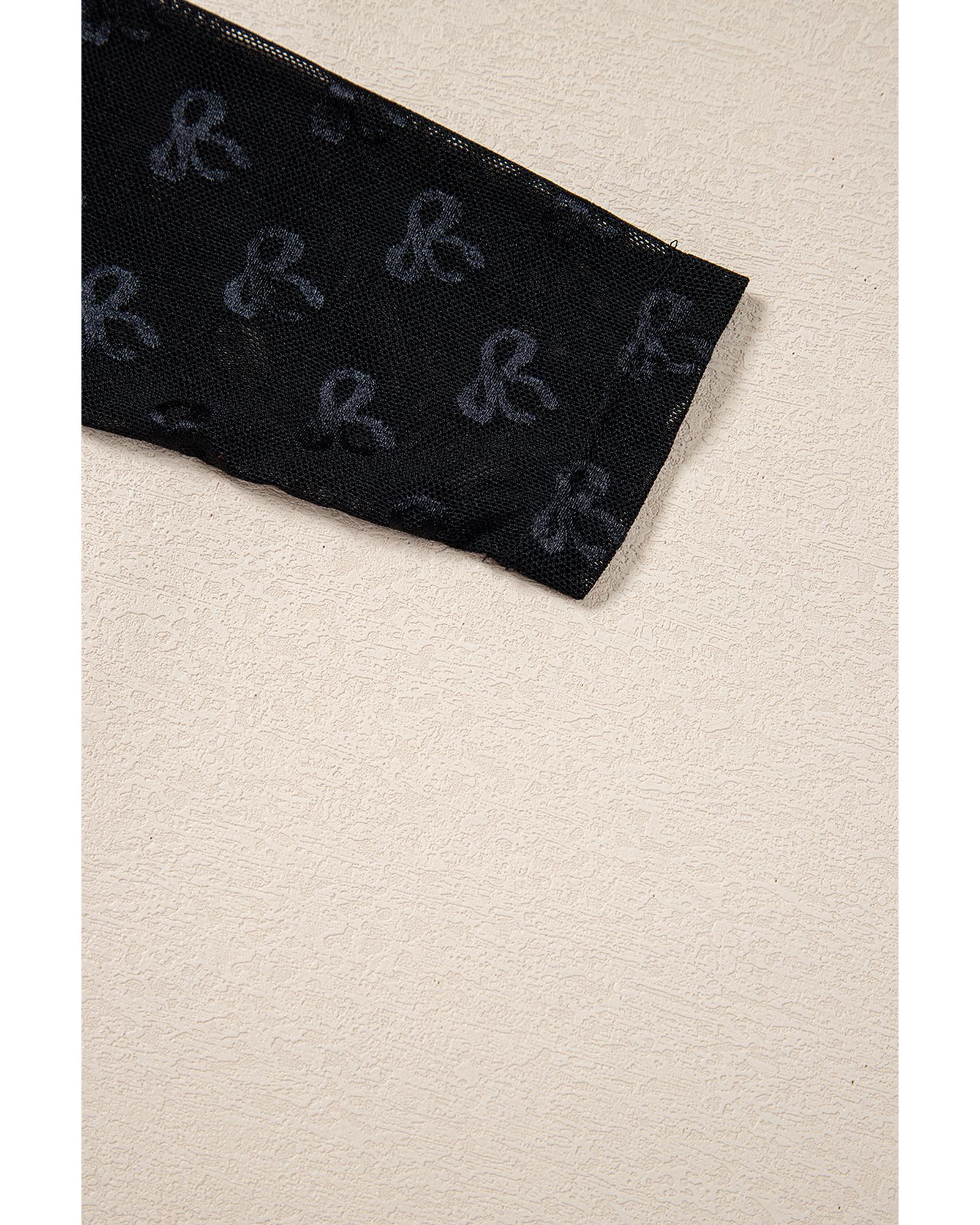 Black Mesh Bow Pattern Long Sleeve Top – L