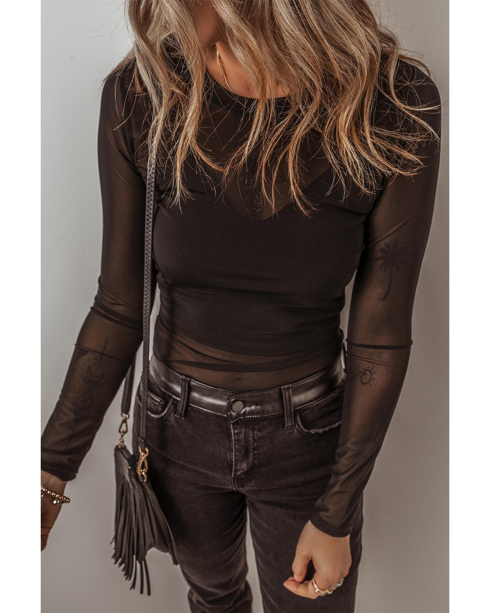 • Black Mesh Long Sleeve Slim Fit Bodysuit