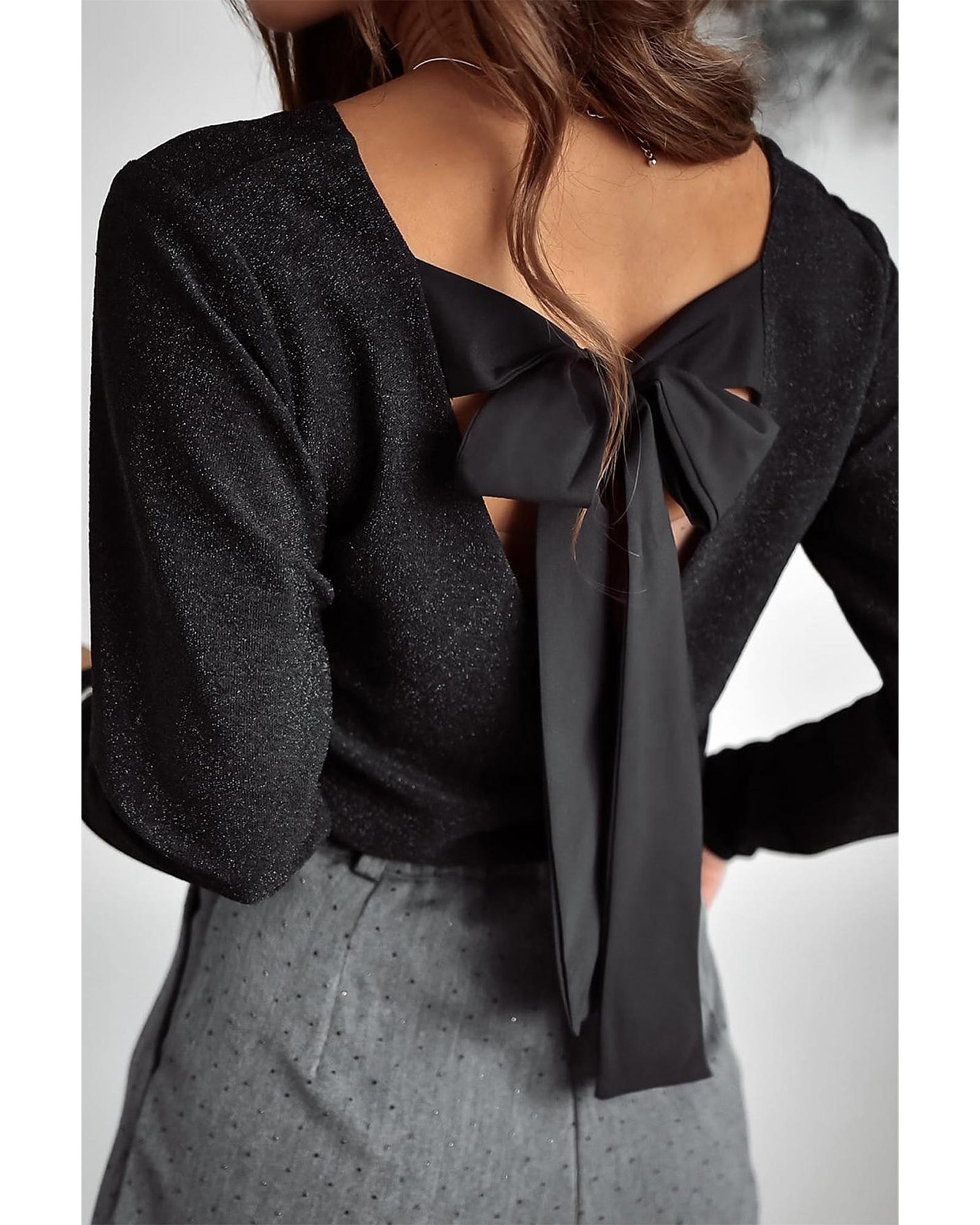 Rose Red Metallic Frilled V Neck Puff Sleeve Babydoll Blouse - L
