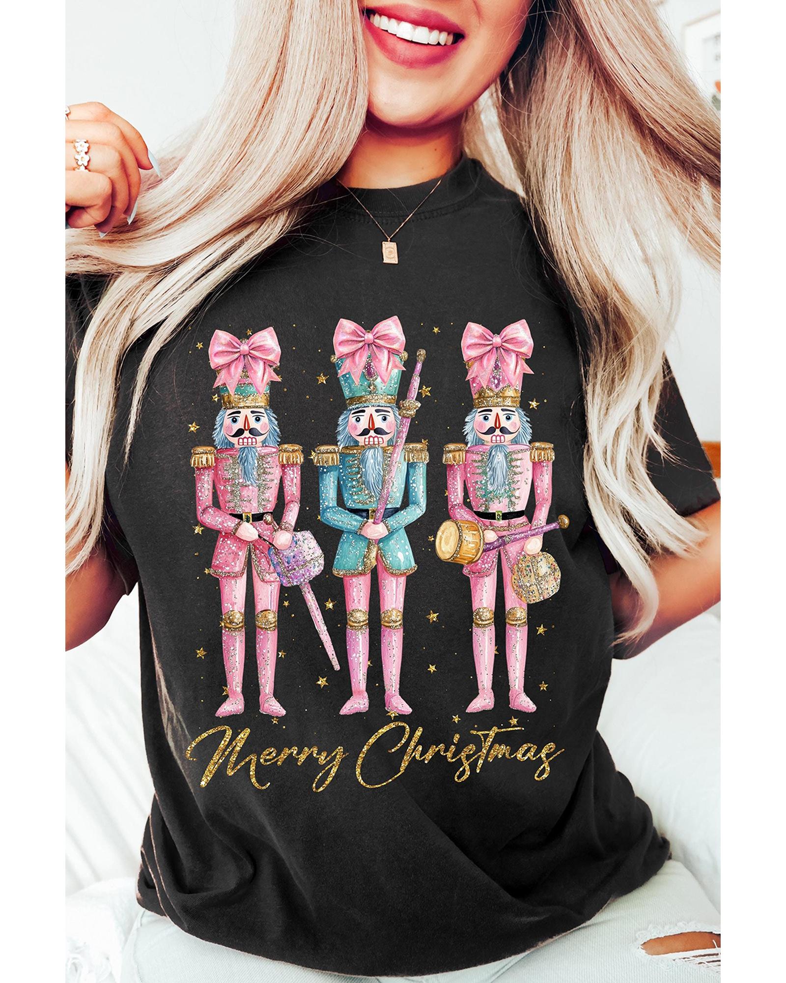 - Black Nutcracker Merry Christmas Printed Crewneck T