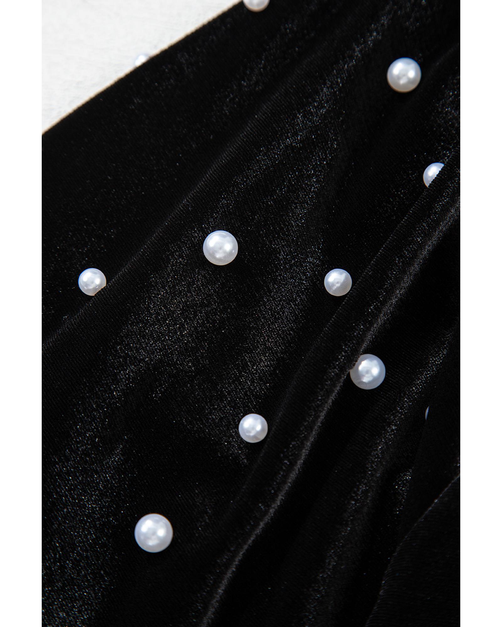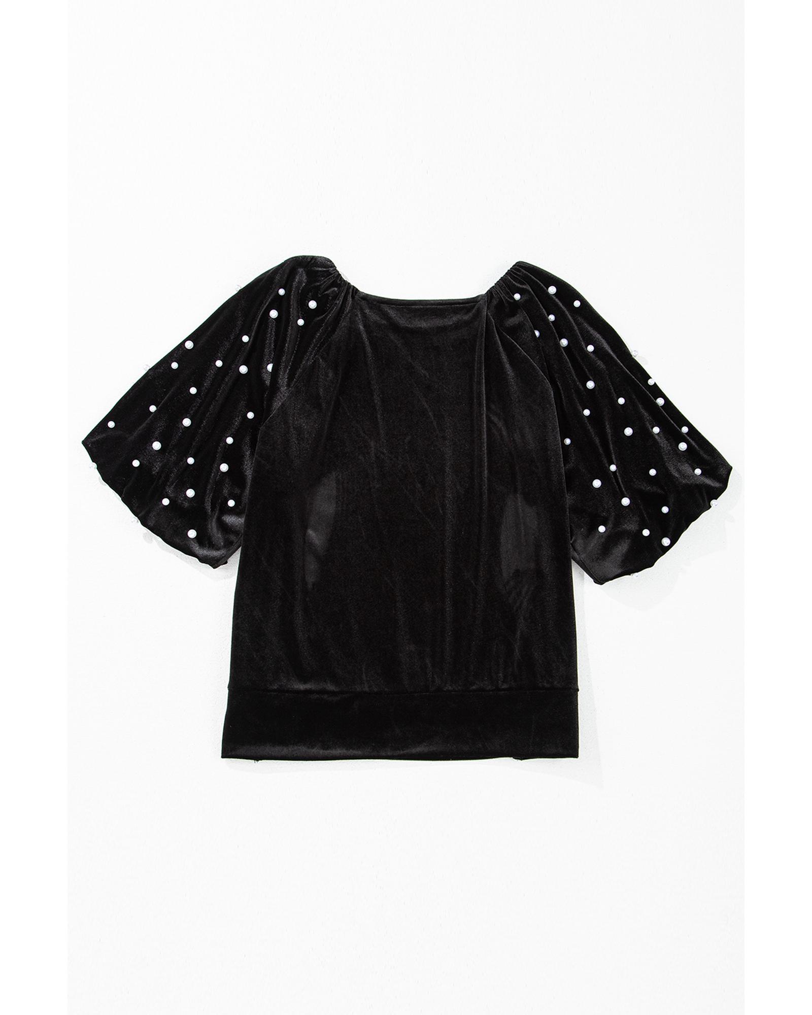 Black Pearl Beaded Half Sleeve Velvet Top – XL