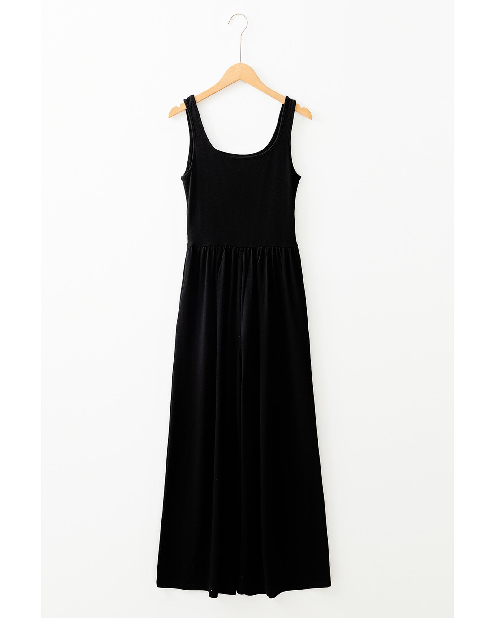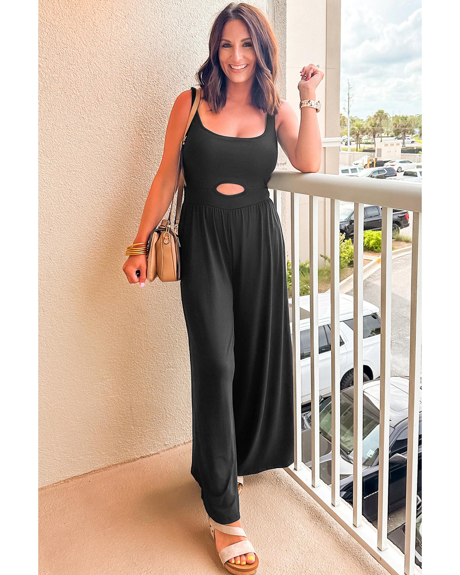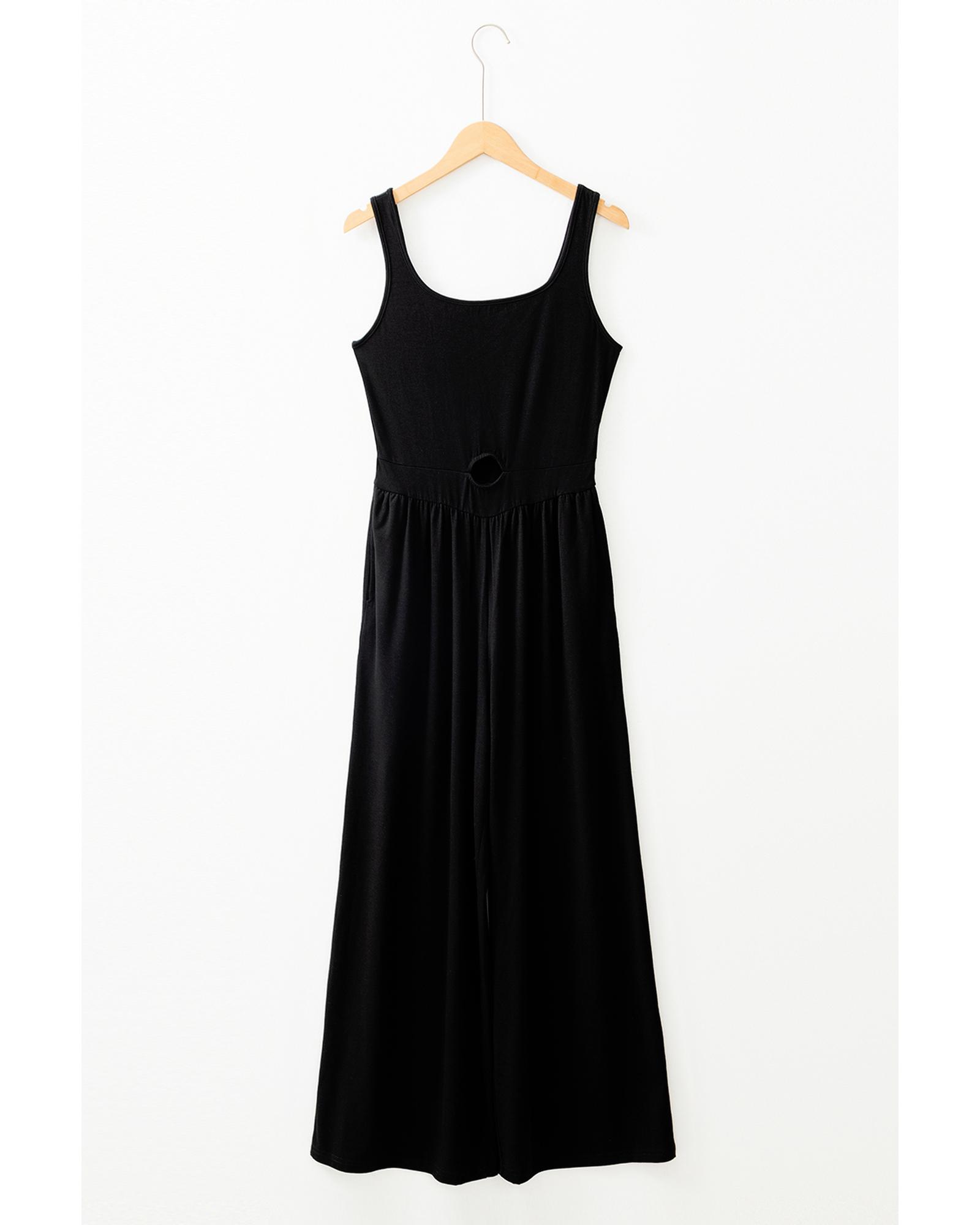 Black Peekaboo Wide Leg Square Neck Sleeveless Jumpsuit – S