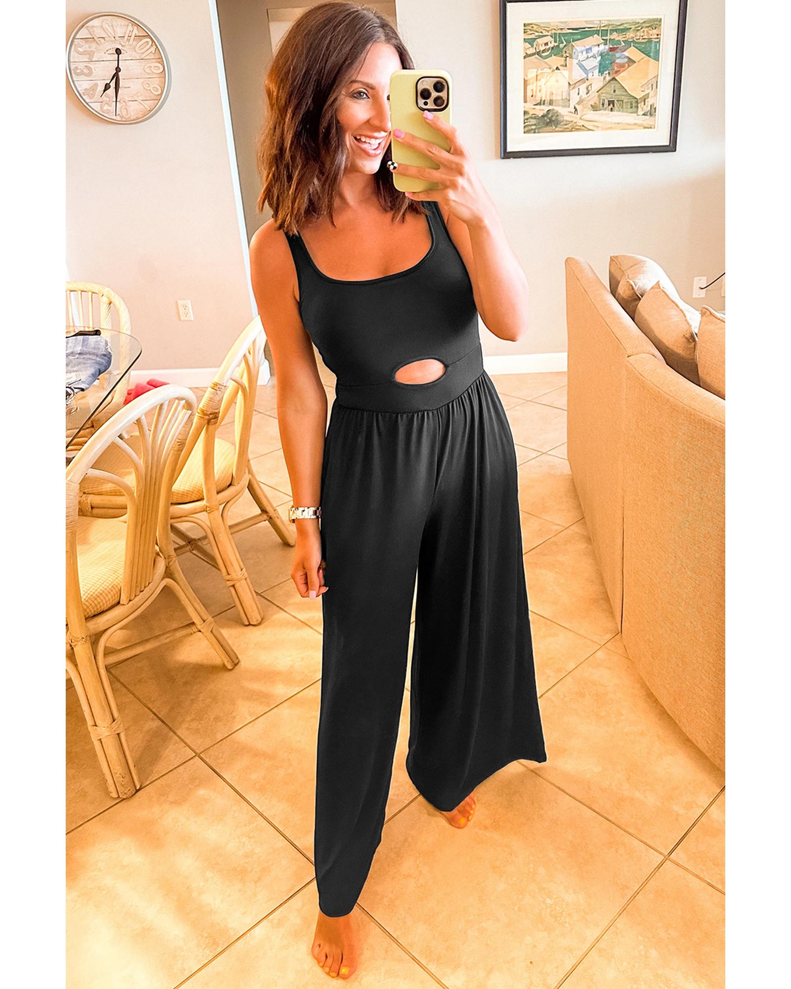 Black Peekaboo Wide Leg Square Neck Sleeveless Jumpsuit - XL