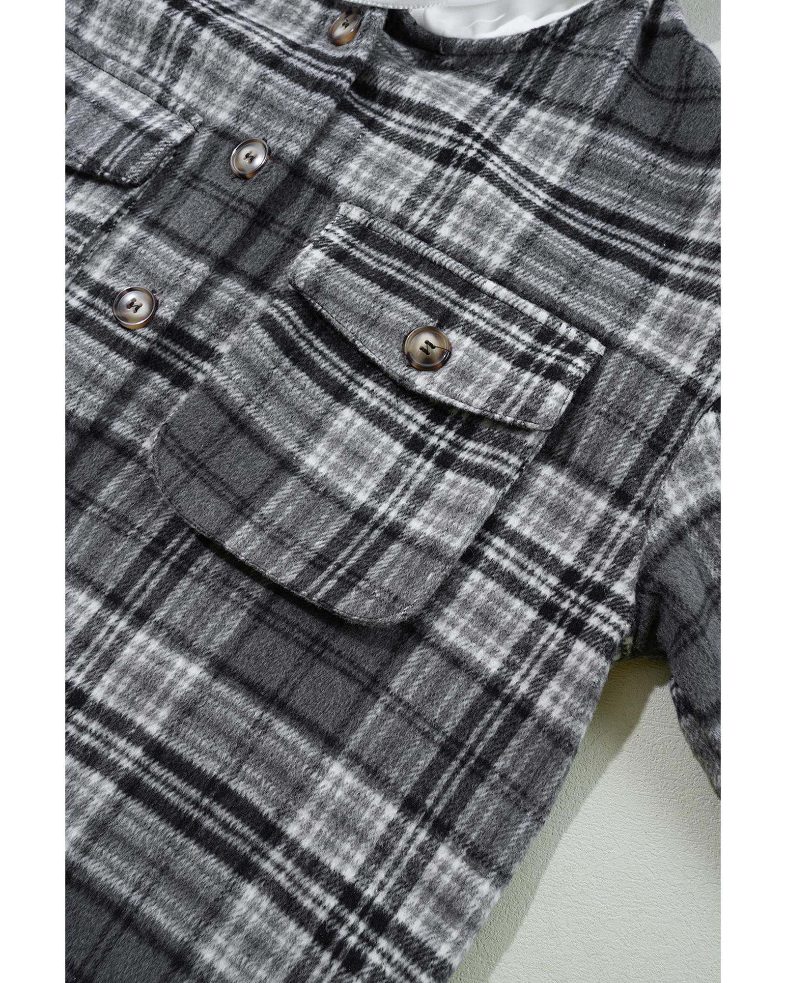 Black Plaid Print Flap Pockets Contrast Hooded Loose Shacket – XL