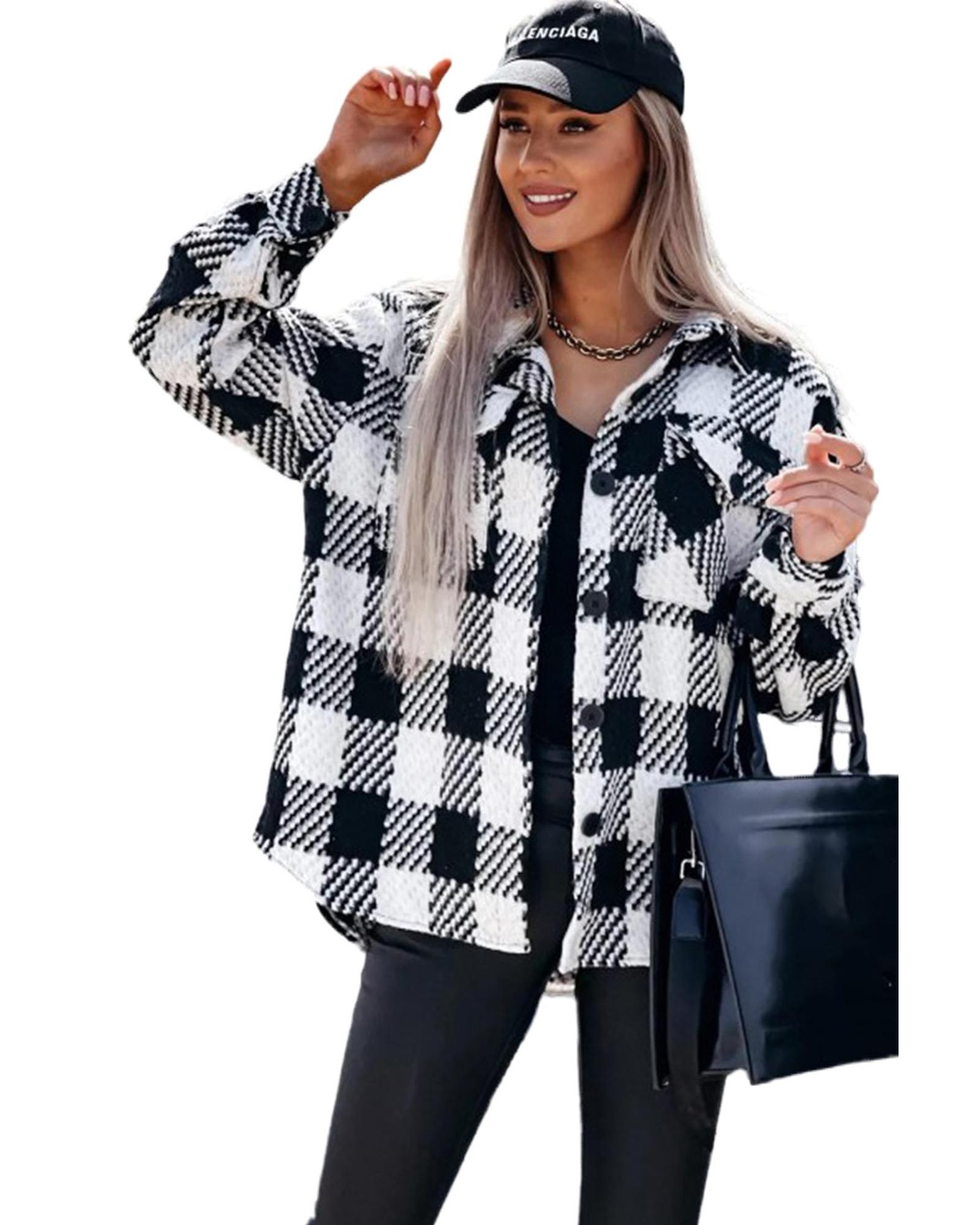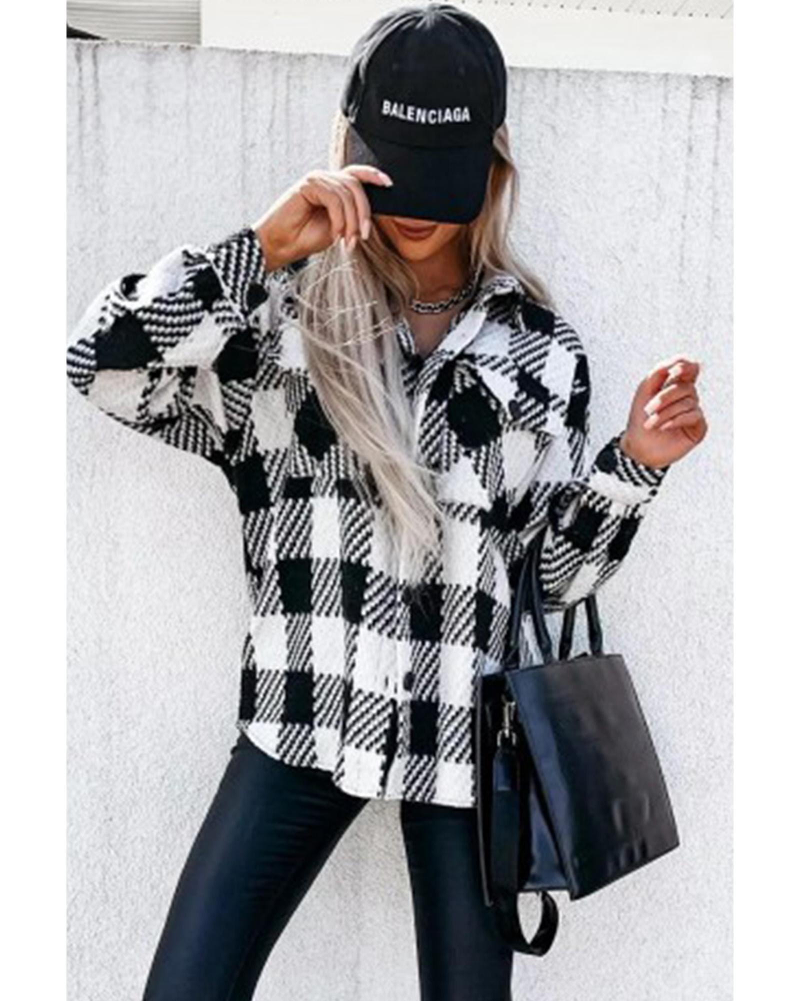Rose Stripe Plus Size Checkered Print Button up Shirt - 2X