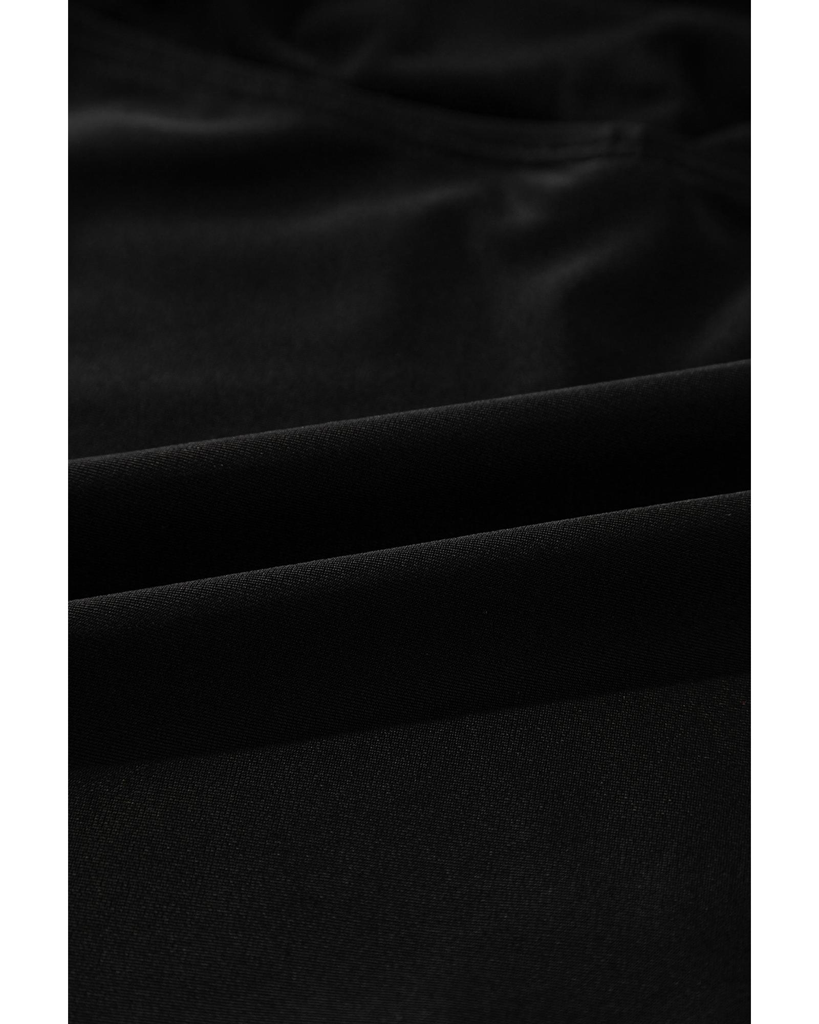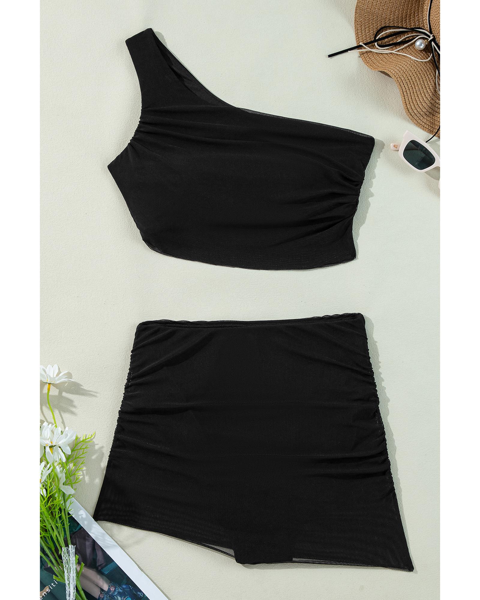 Black Pleated Mesh One Shoulder Bikini Top and Skirts Set – L