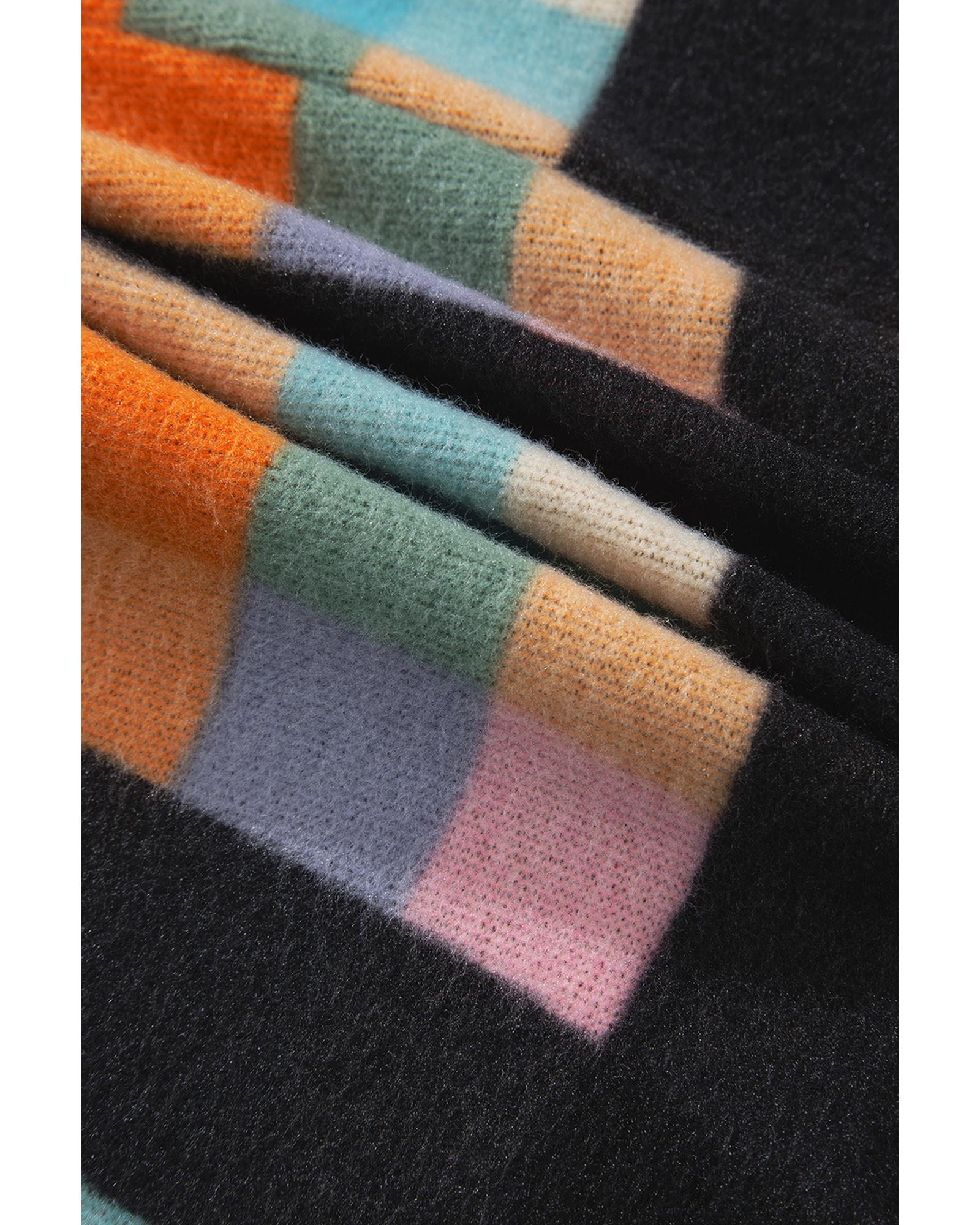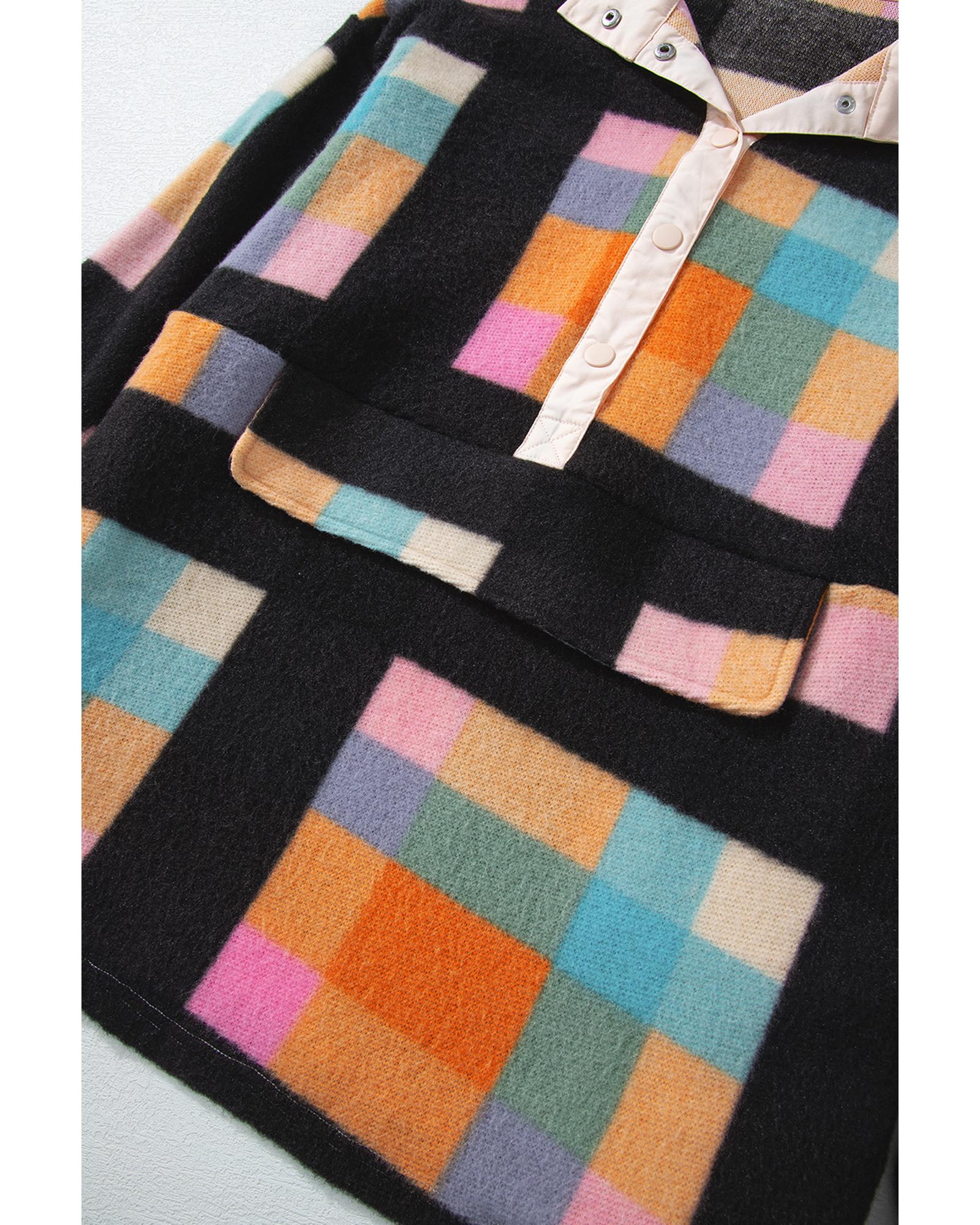 Black Plus Size Checkered Print Sherpa Henley Sweatshirt – 1X