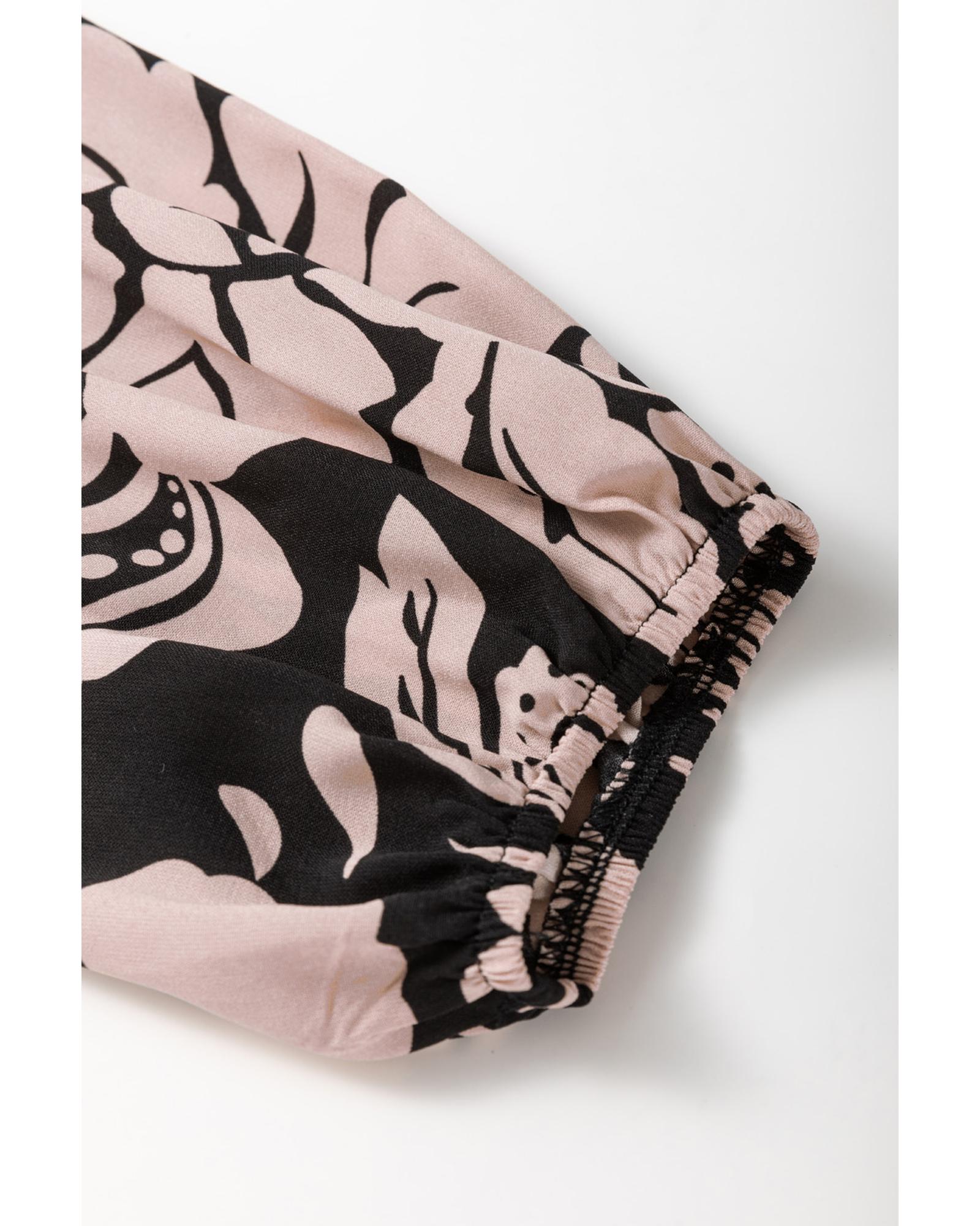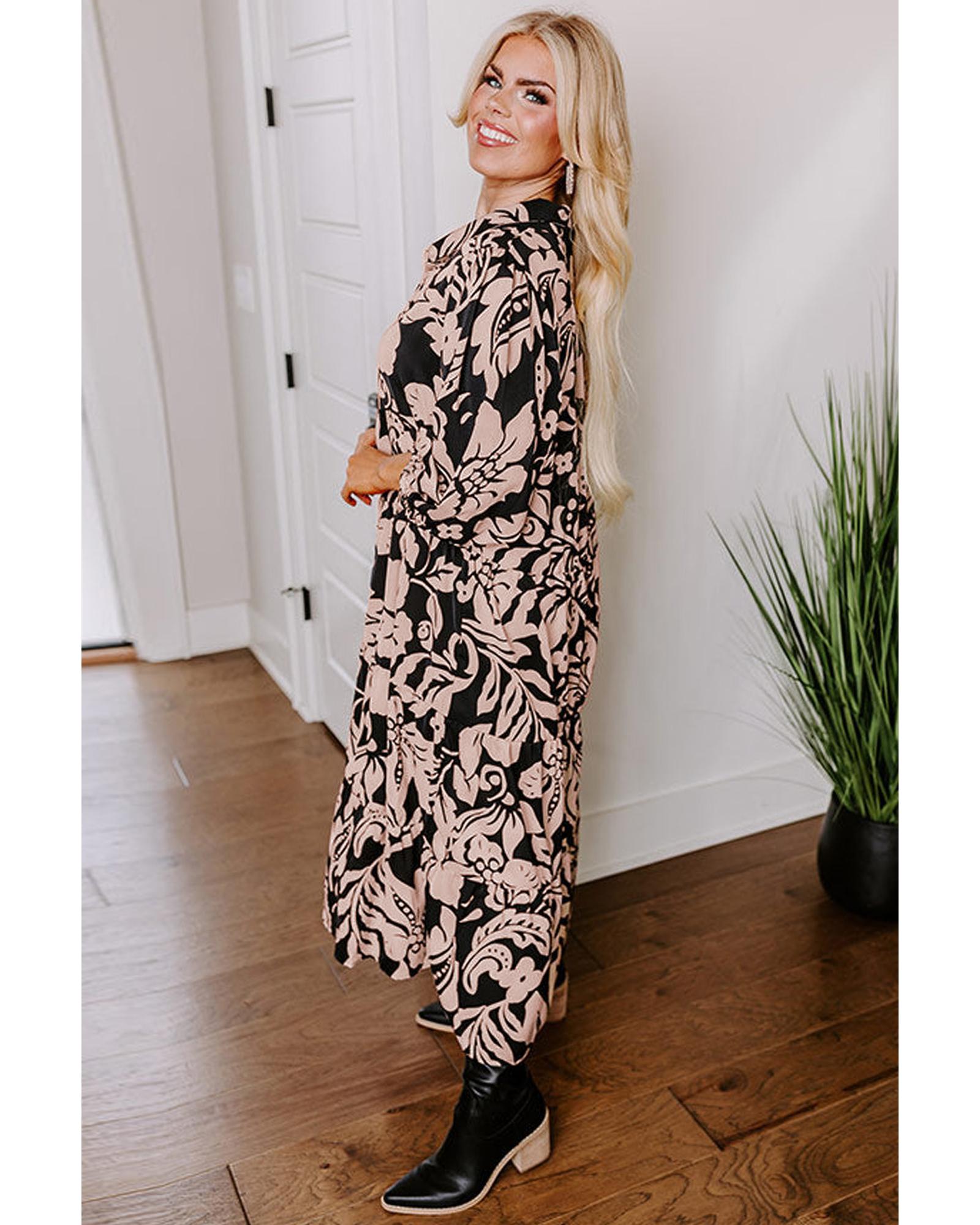- Black Plus Size Floral Printed Puff Sleeve Collared Maxi Dress