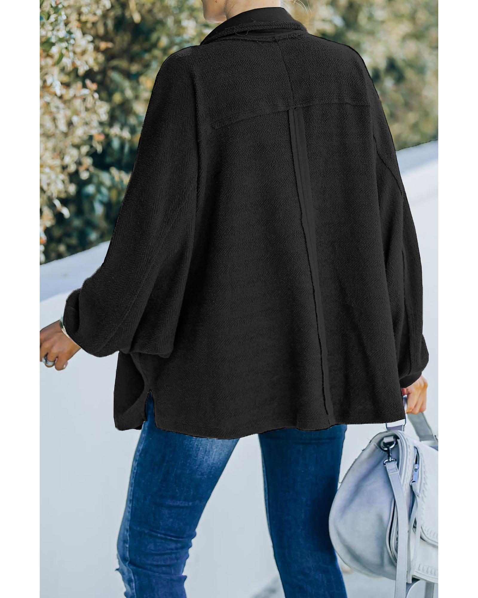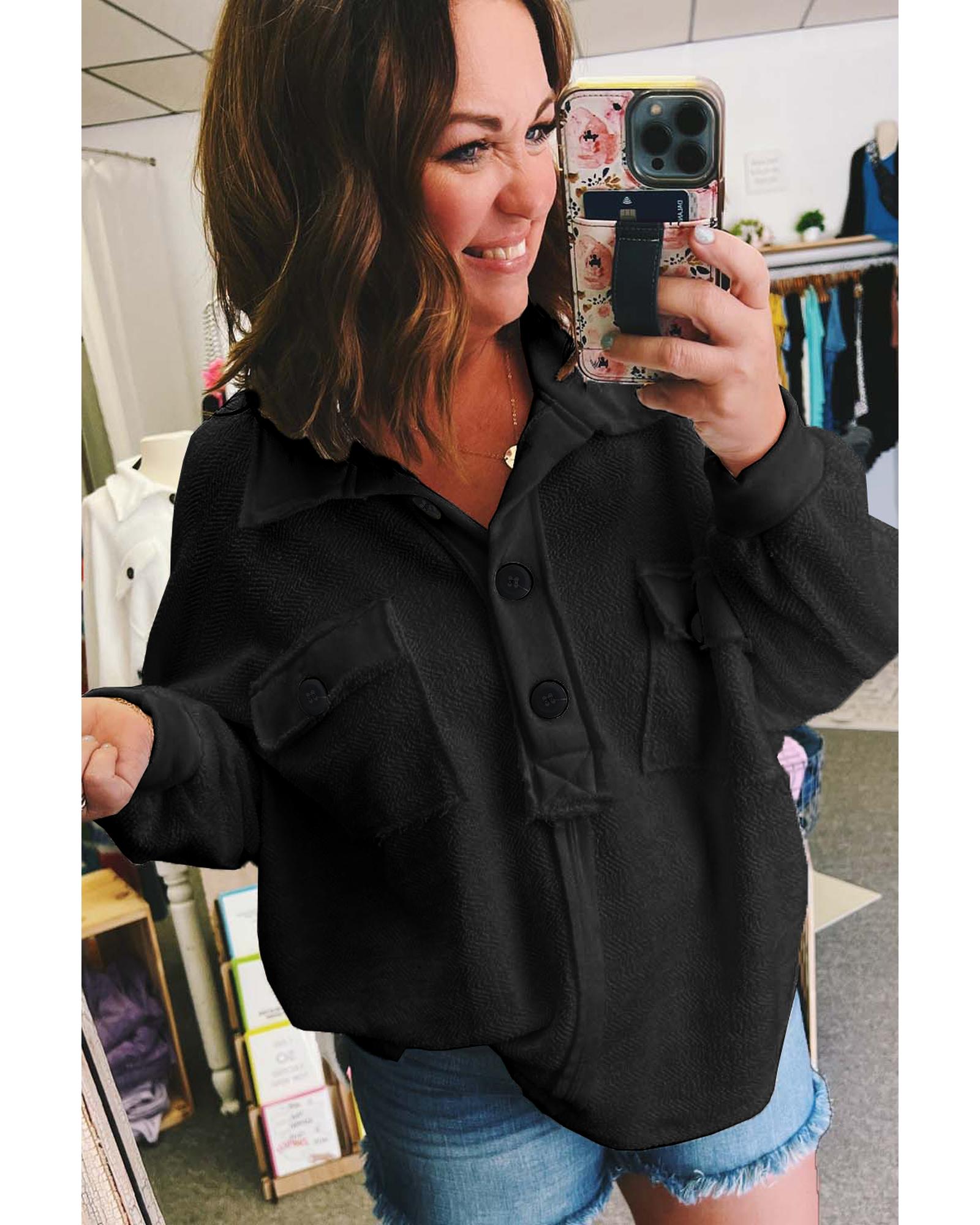 Black Plus Size Long Sleeve Flap Pocket Henley Top – 1X