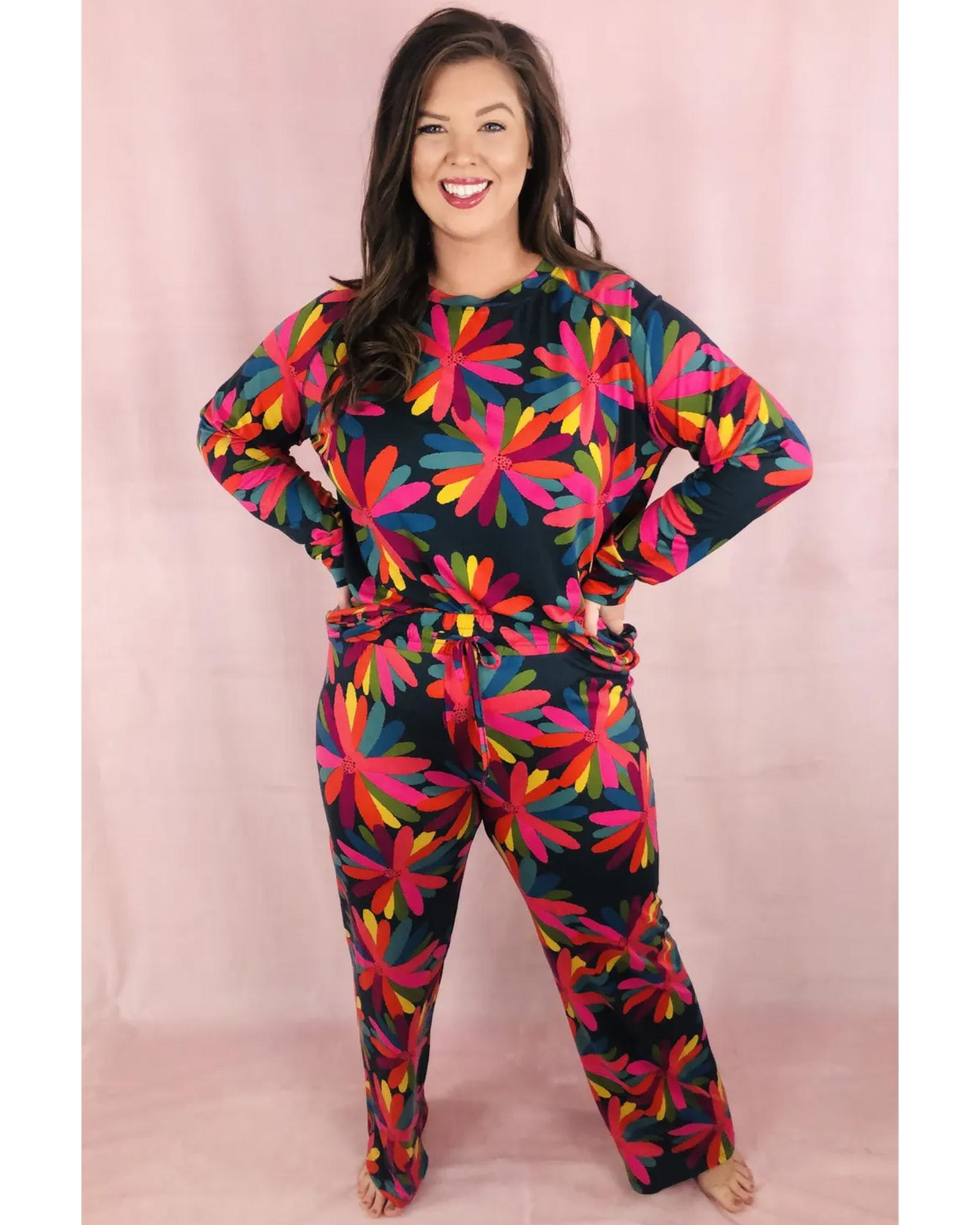Black Plus Size Printed Long Sleeve and Pants Lounge Set - 1X