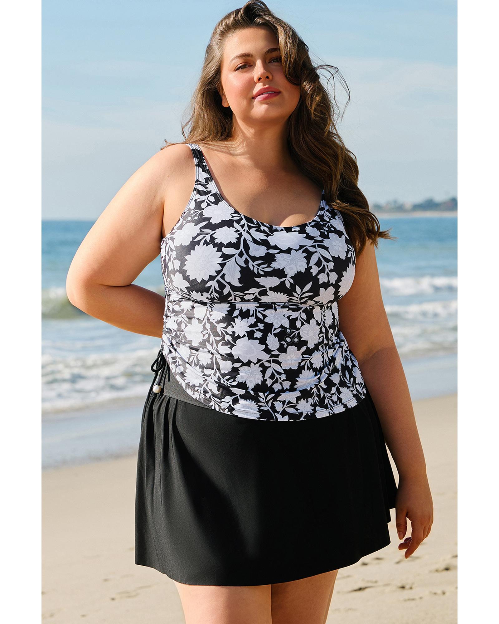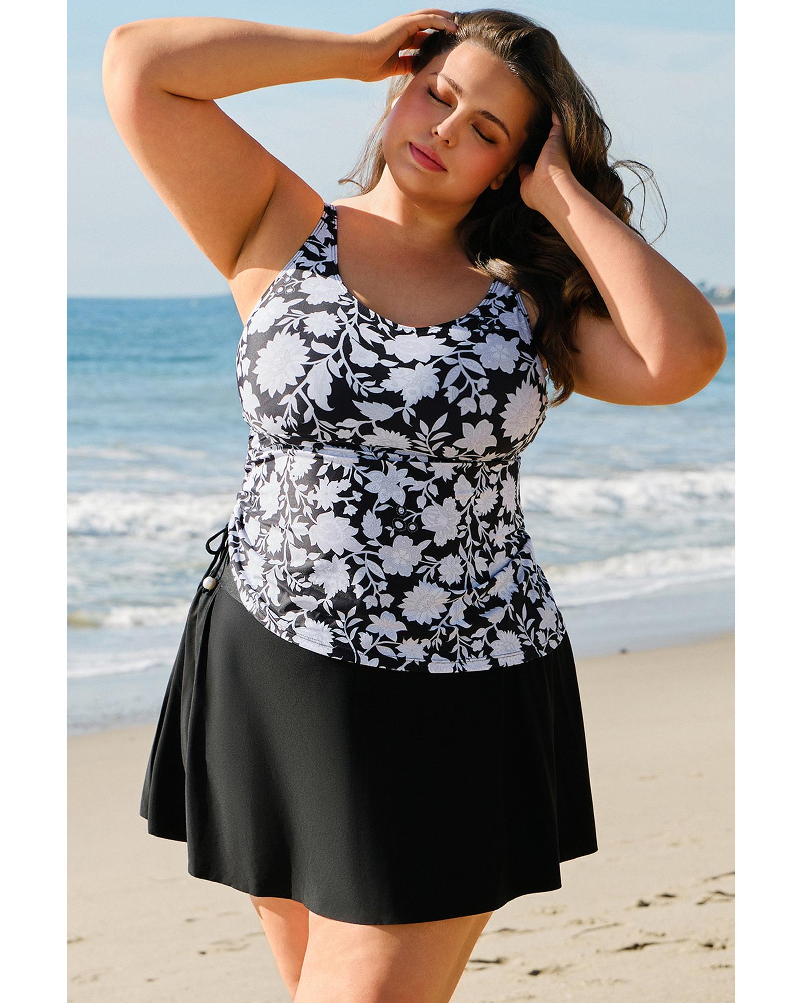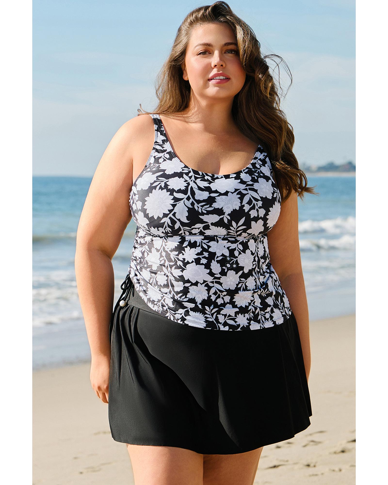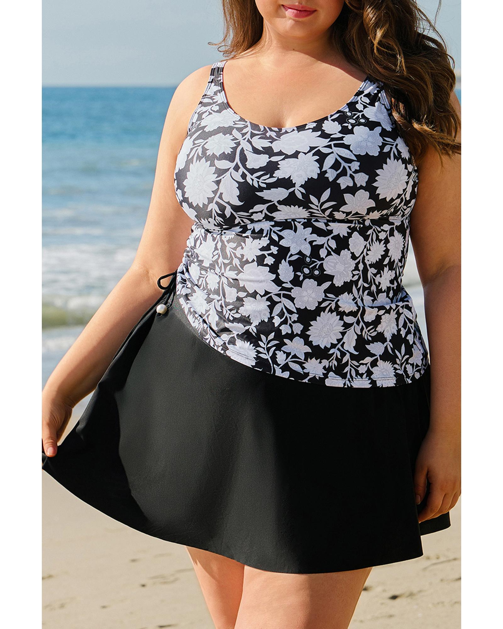 - Black plus size printed tankini set