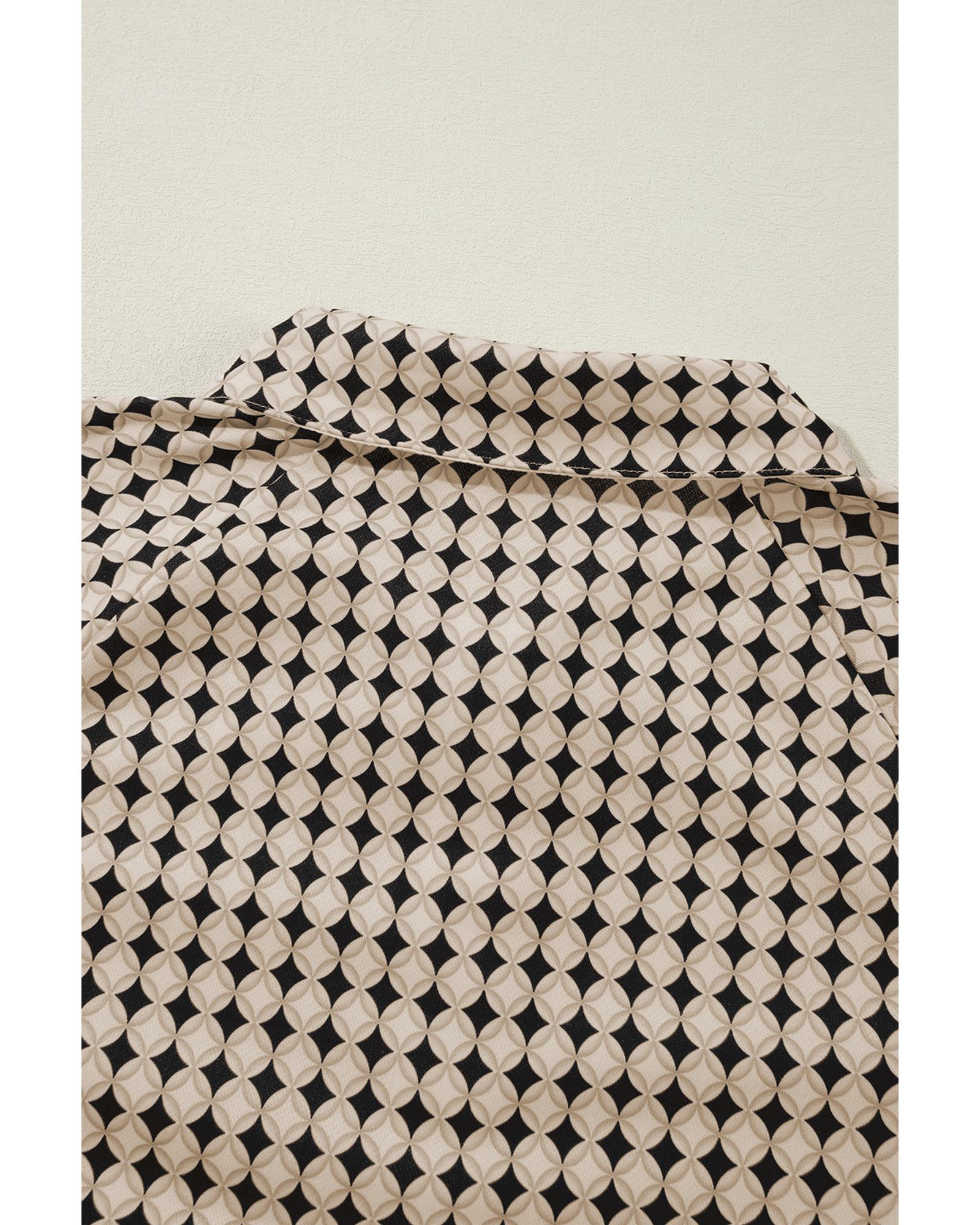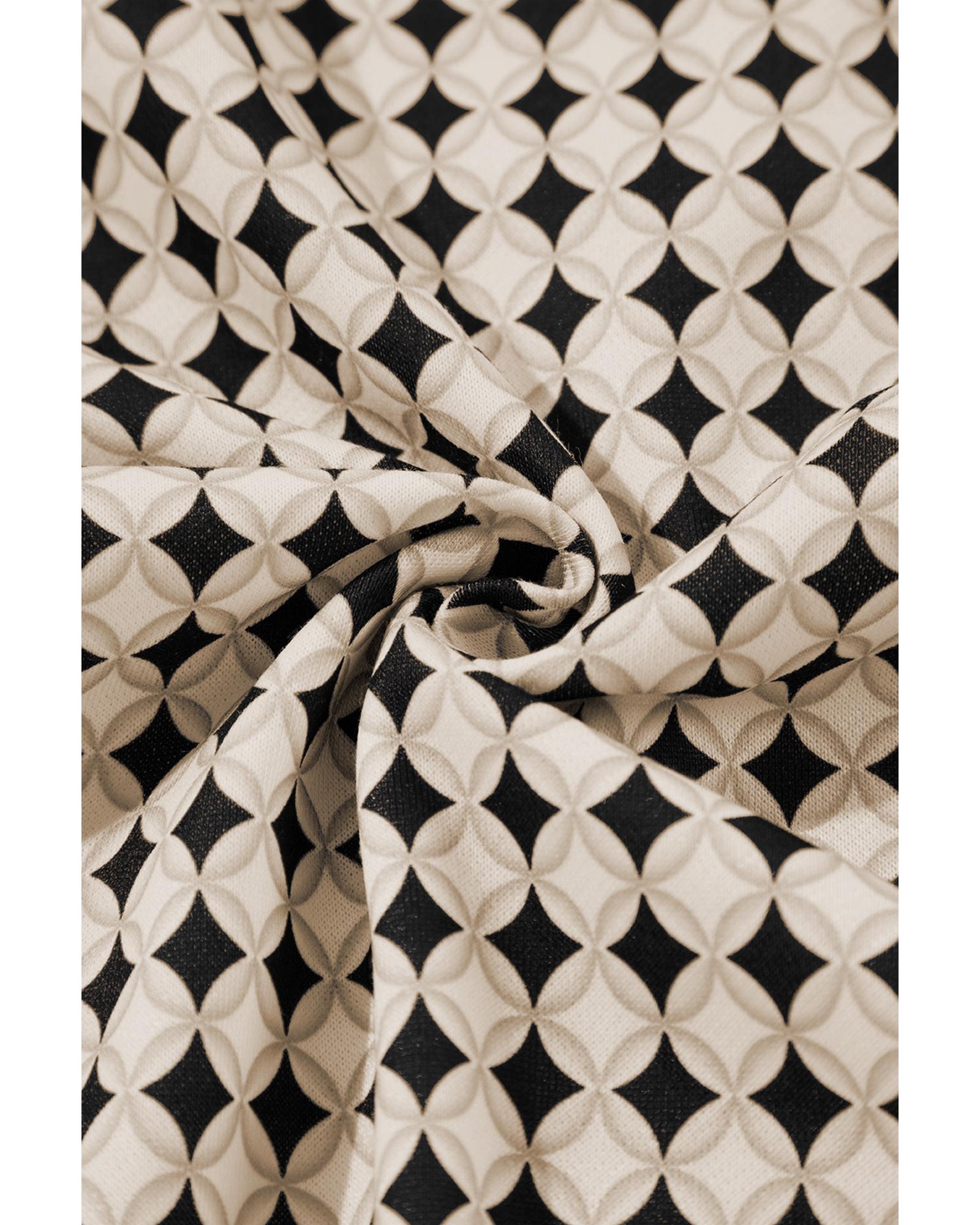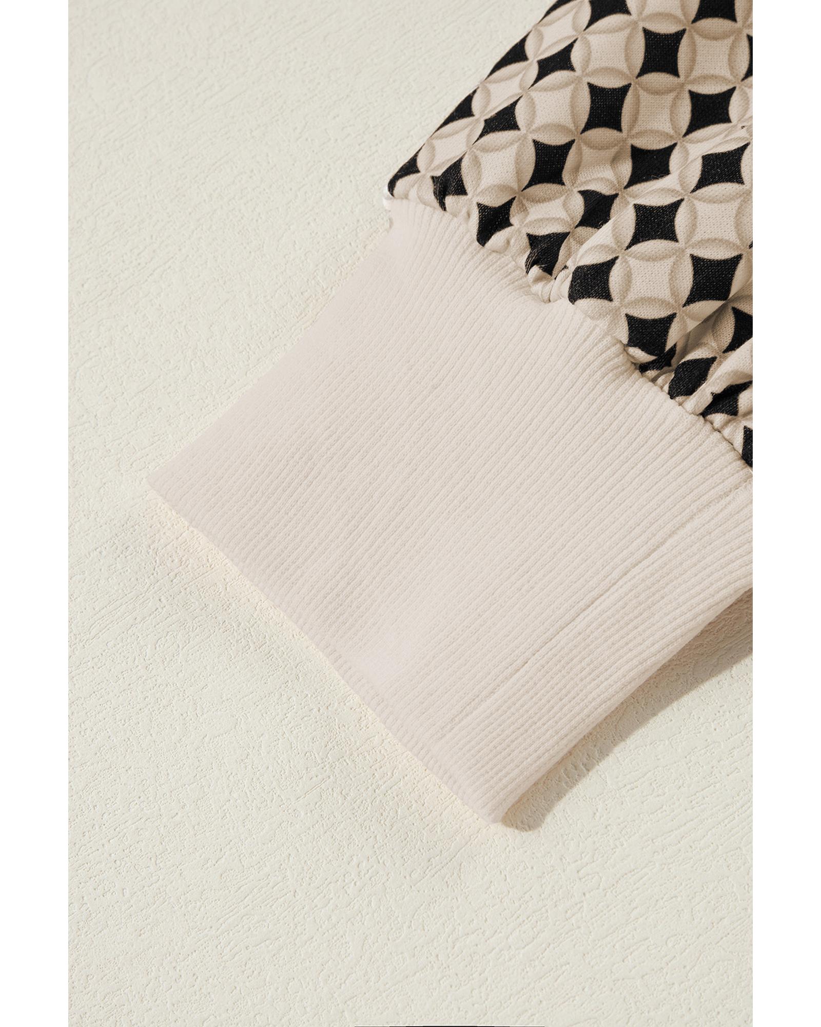 Brown Plus Size Printed Splicing Sleeve Ribbed Trim Sweater - 1X