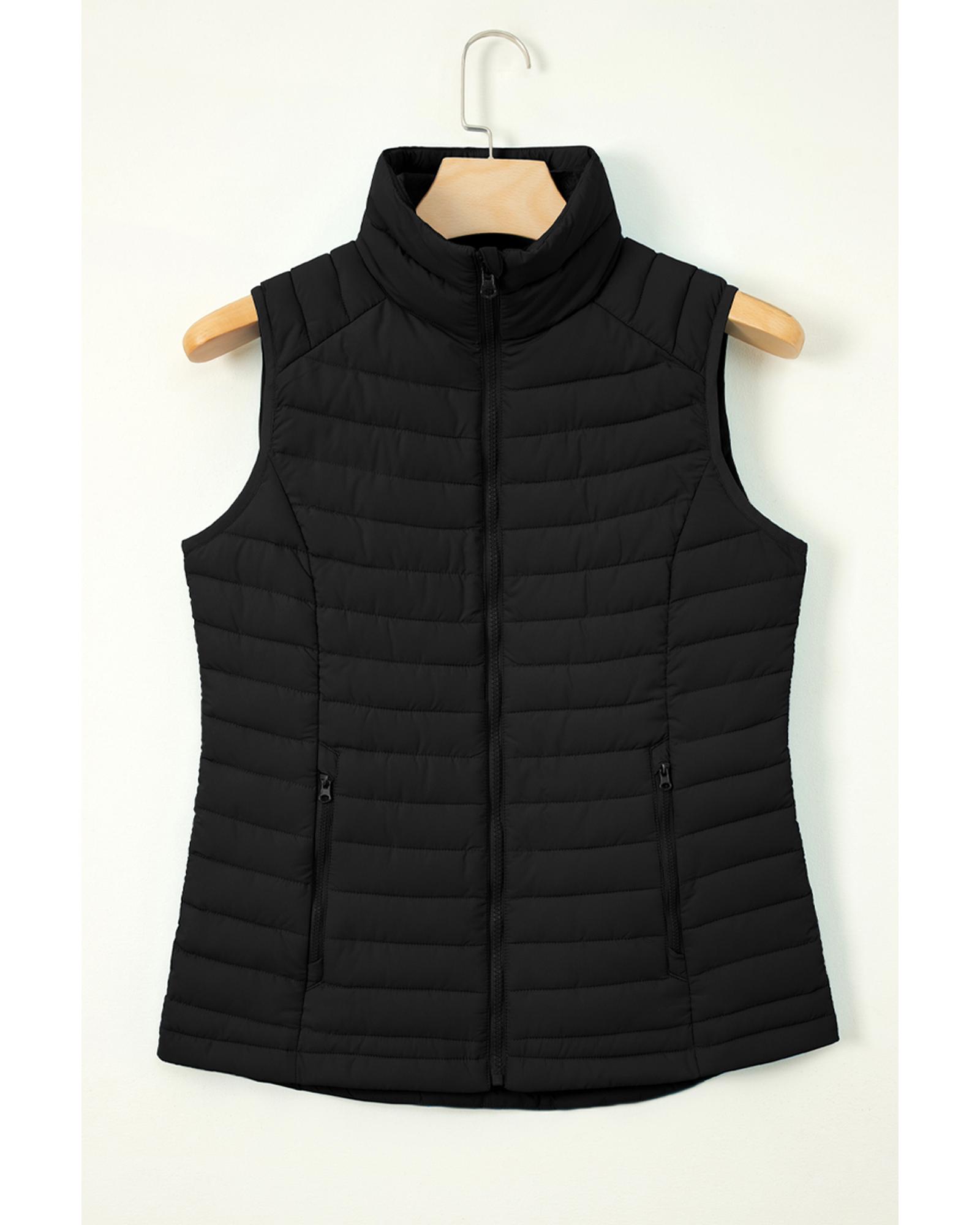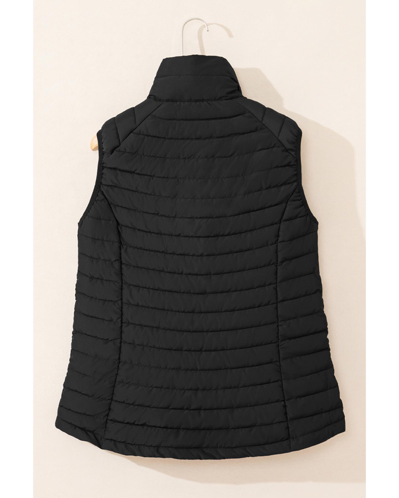- Black plush collared quilted zipped puffer vest