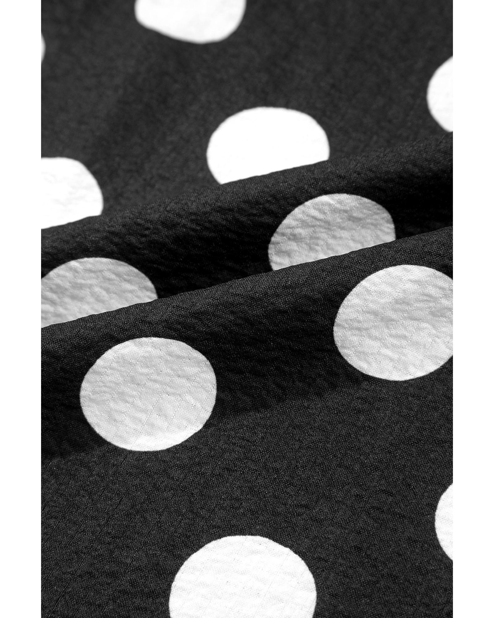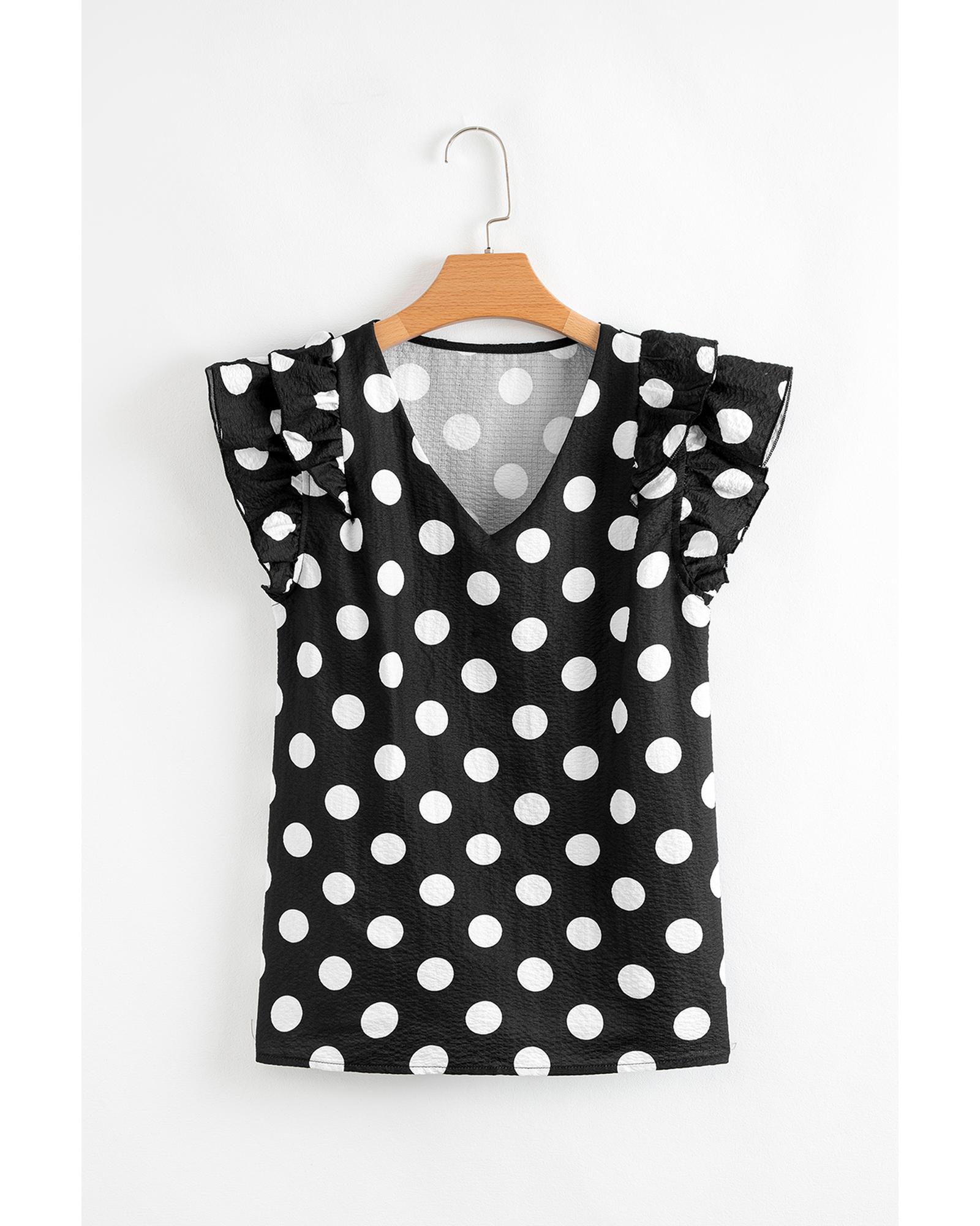 Black Polka Dot Print Ruffled Sleeve V Neck Blouse – S
