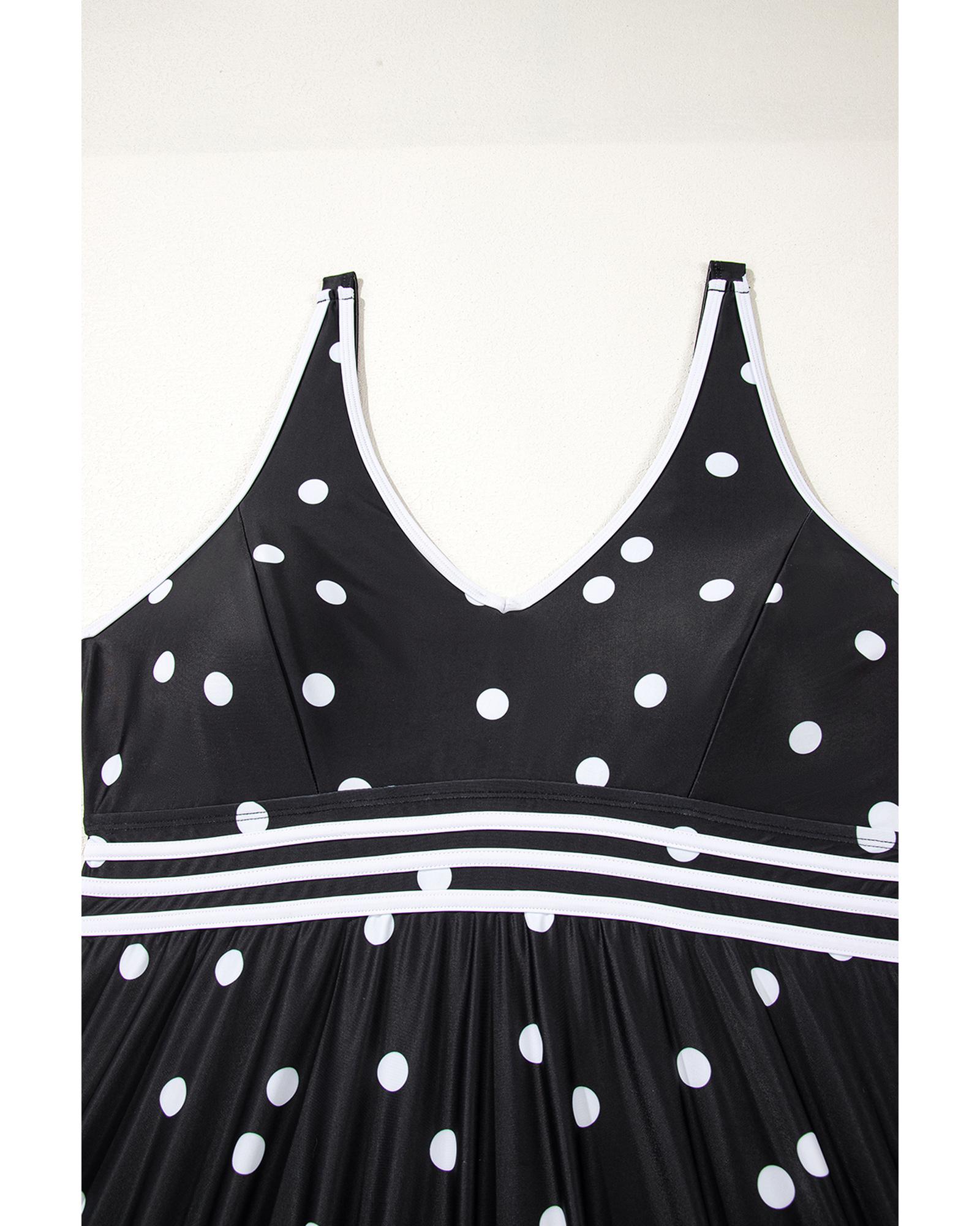 Black Polka Dot Trim V Neck Plus Size Swim Dress – 3X