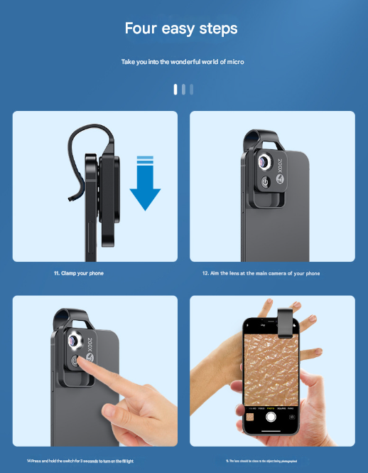 - Easy to Use – No App Needed: Enjoy hassle-free operation. Simply clip the lens over your phone’s main camera, turn on the light, and start exploring. No special apps or software are required.