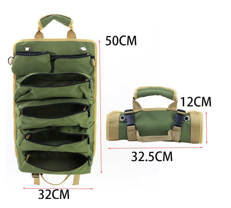 Portable Roll-Up Tool Organizer with Zippered Pockets