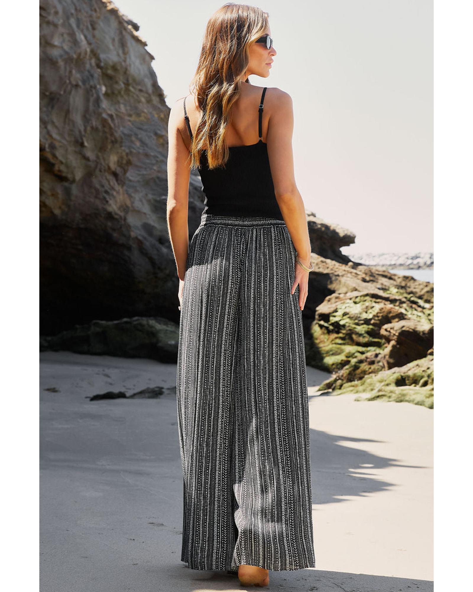 Black Printed Striped Printed Slit Wide Leg High Waist Pants – XL