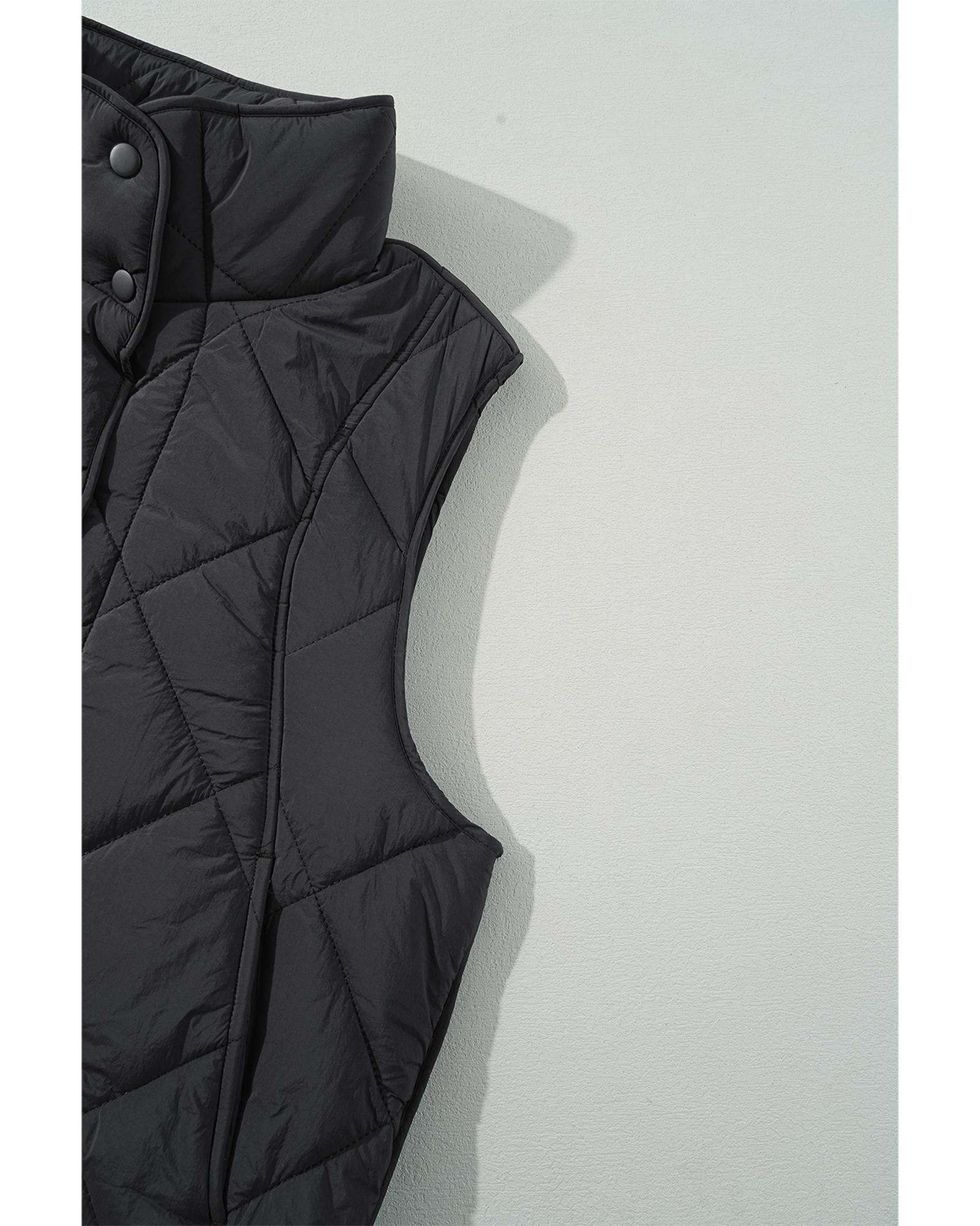 Black Quilted High Neck Button Up Pocket Vest Coat – M