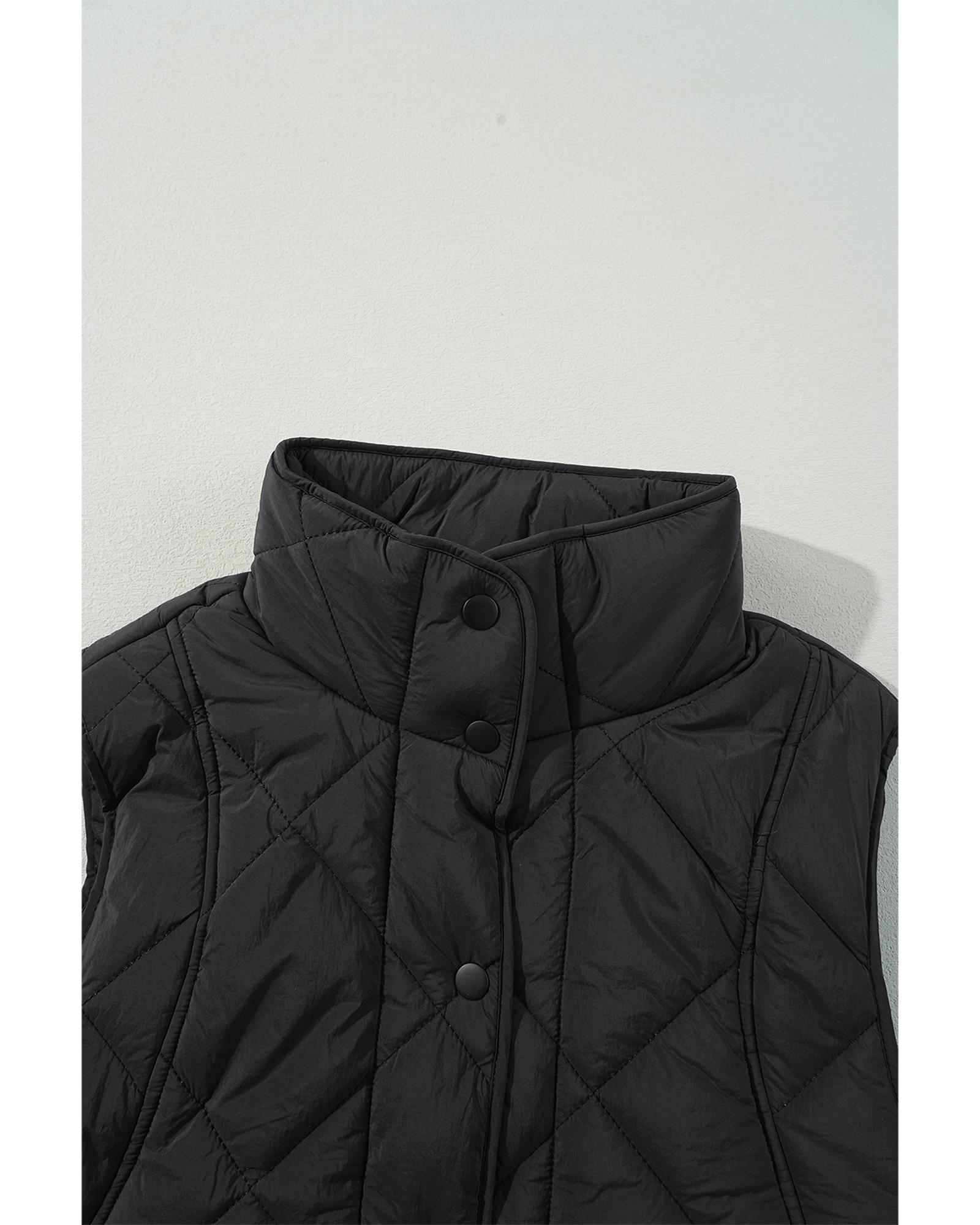 Black Quilted High Neck Button Up Pocket Vest Coat – XL