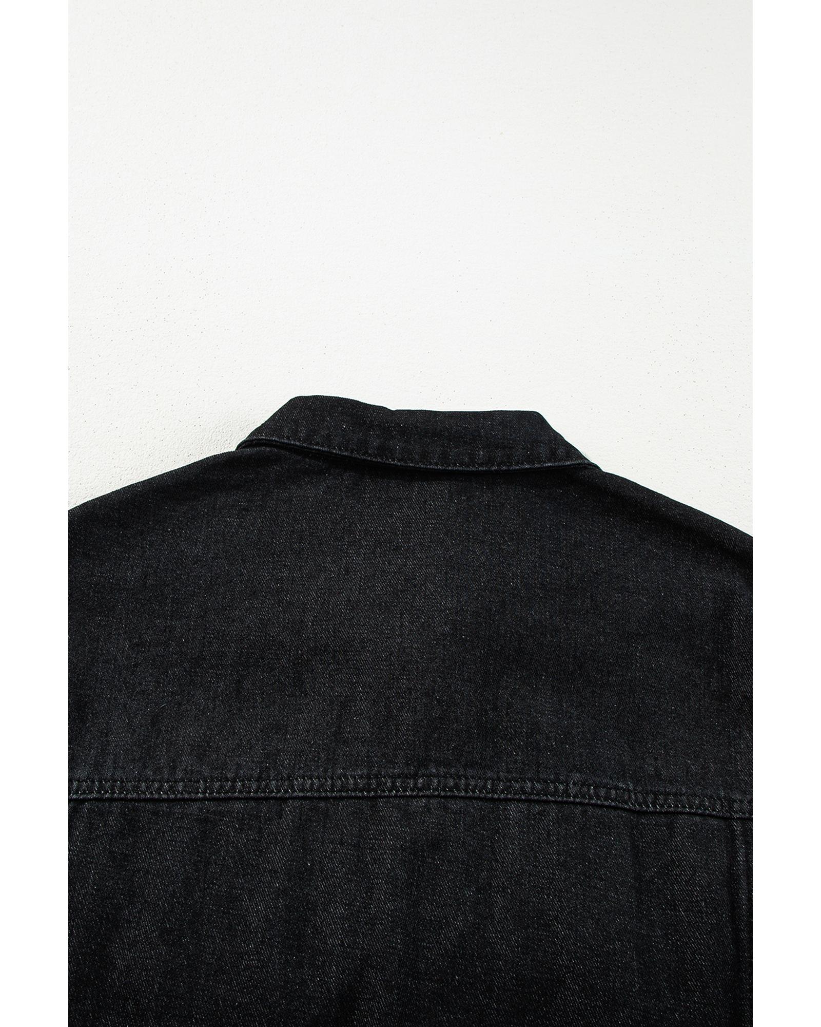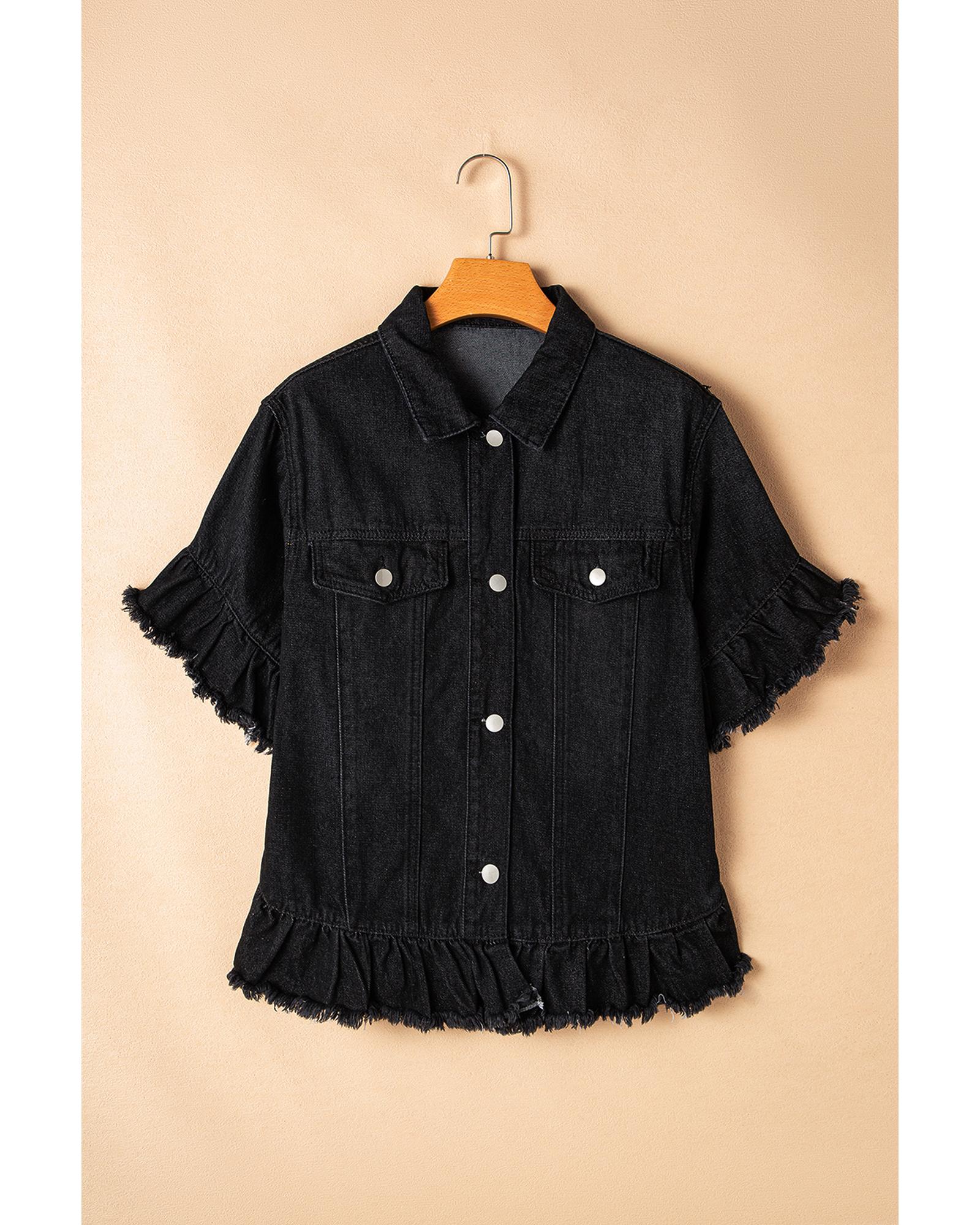 Black Raw Edge Ruffled Short Sleeve Denim Jacket – L