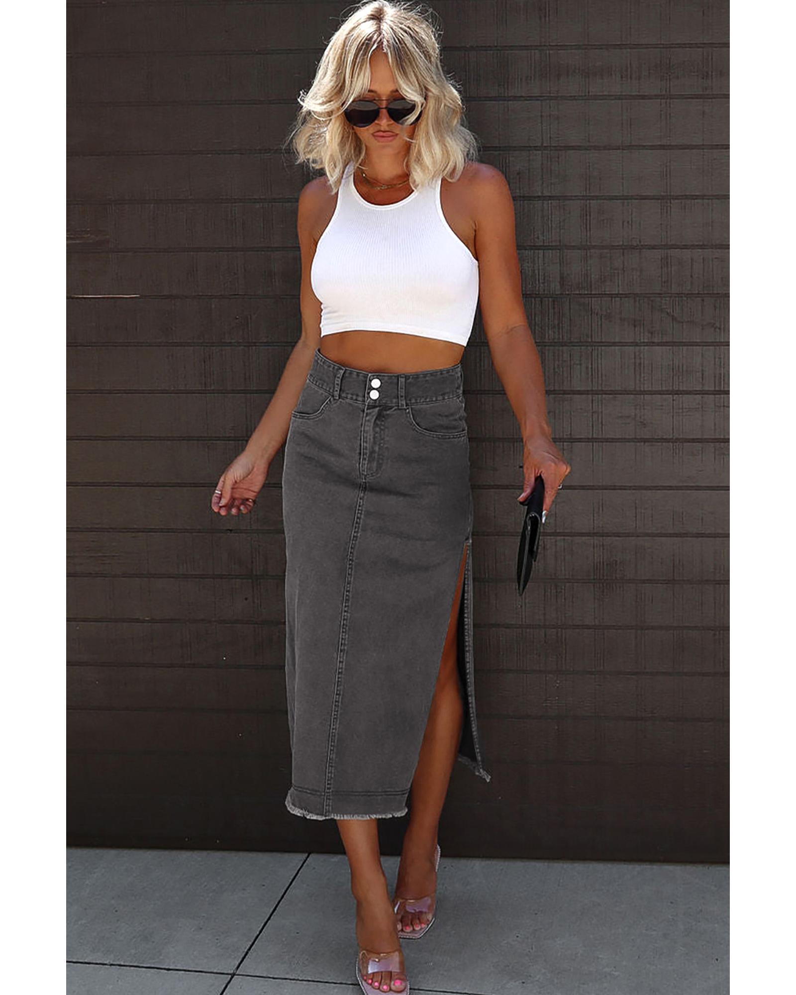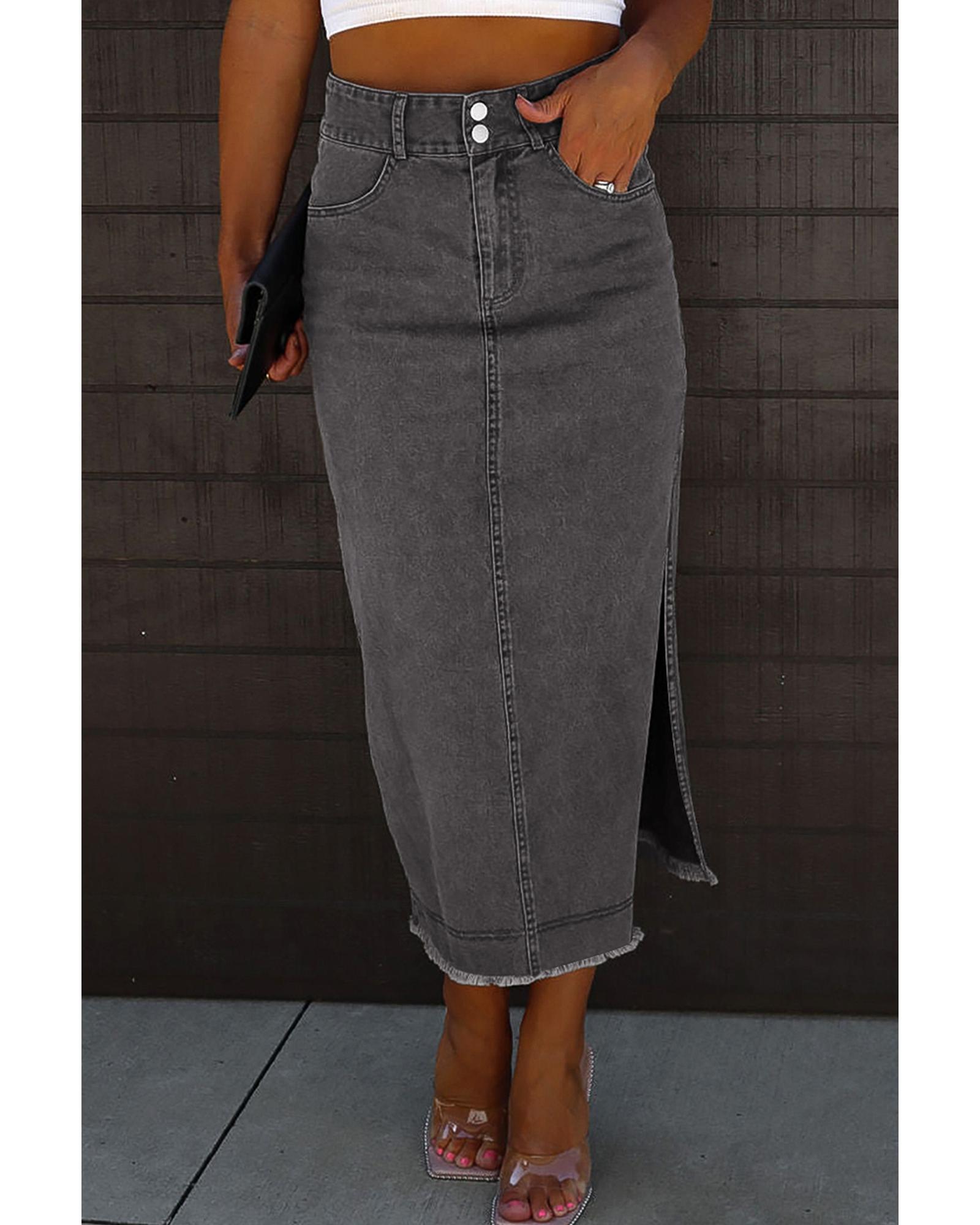 Black Raw Edge Side Slits Buttoned Midi Denim Skirt - XL Original price was: $70.99.Current price is: $37.99.