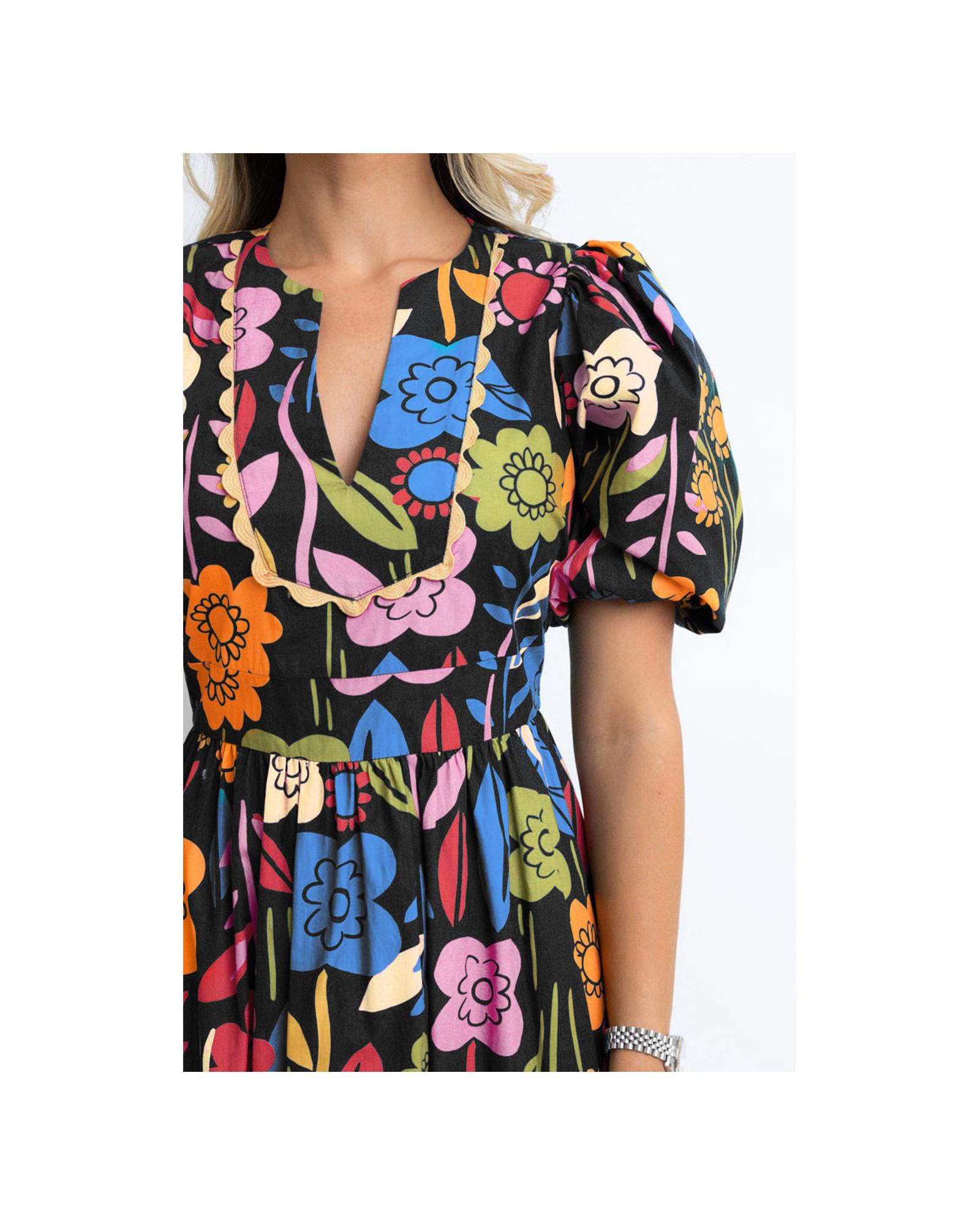 - Charming retro vibe with delicate floral print and elegant silhouette