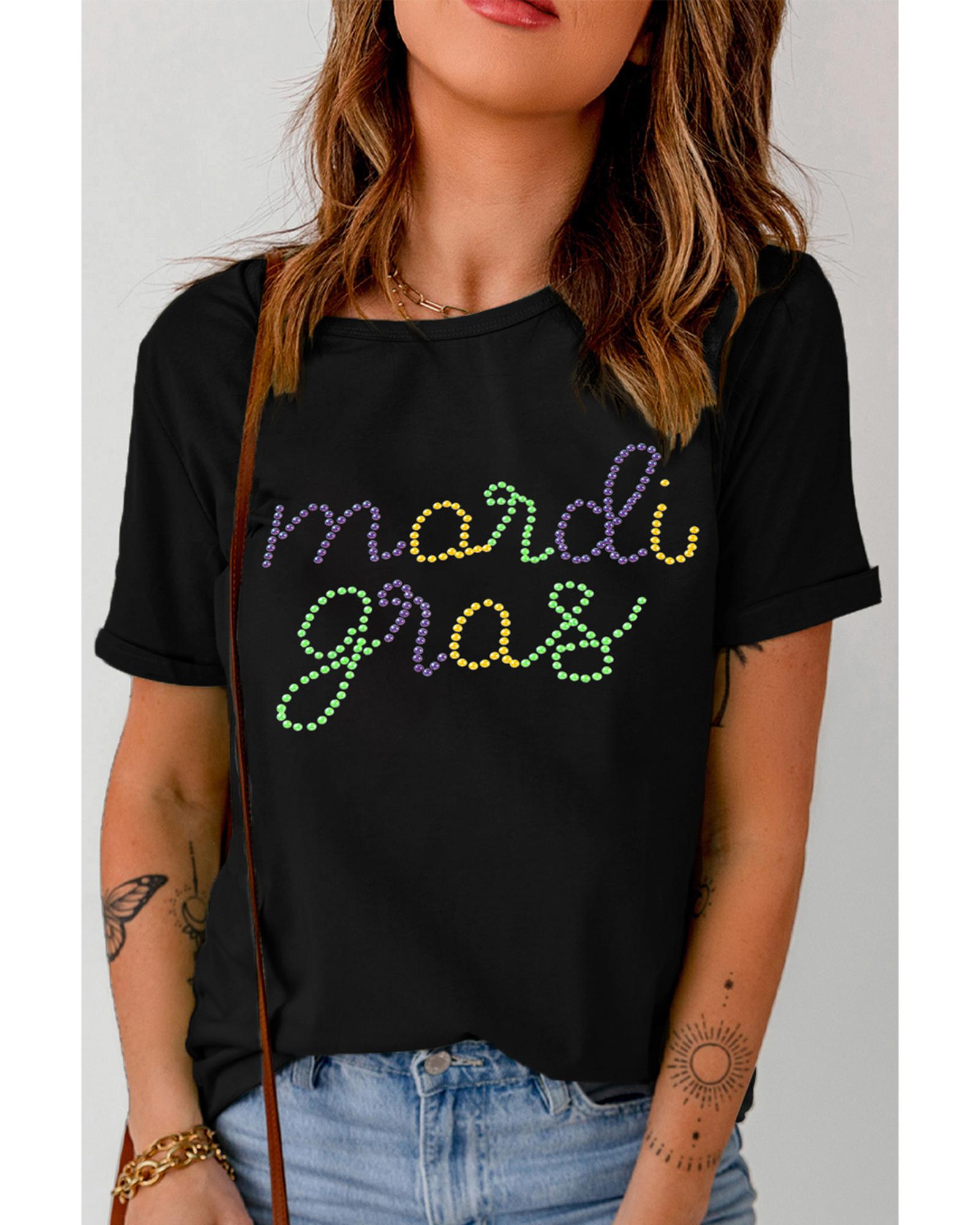 - Black Rhinestone Mardi Gras Letter Graphic T