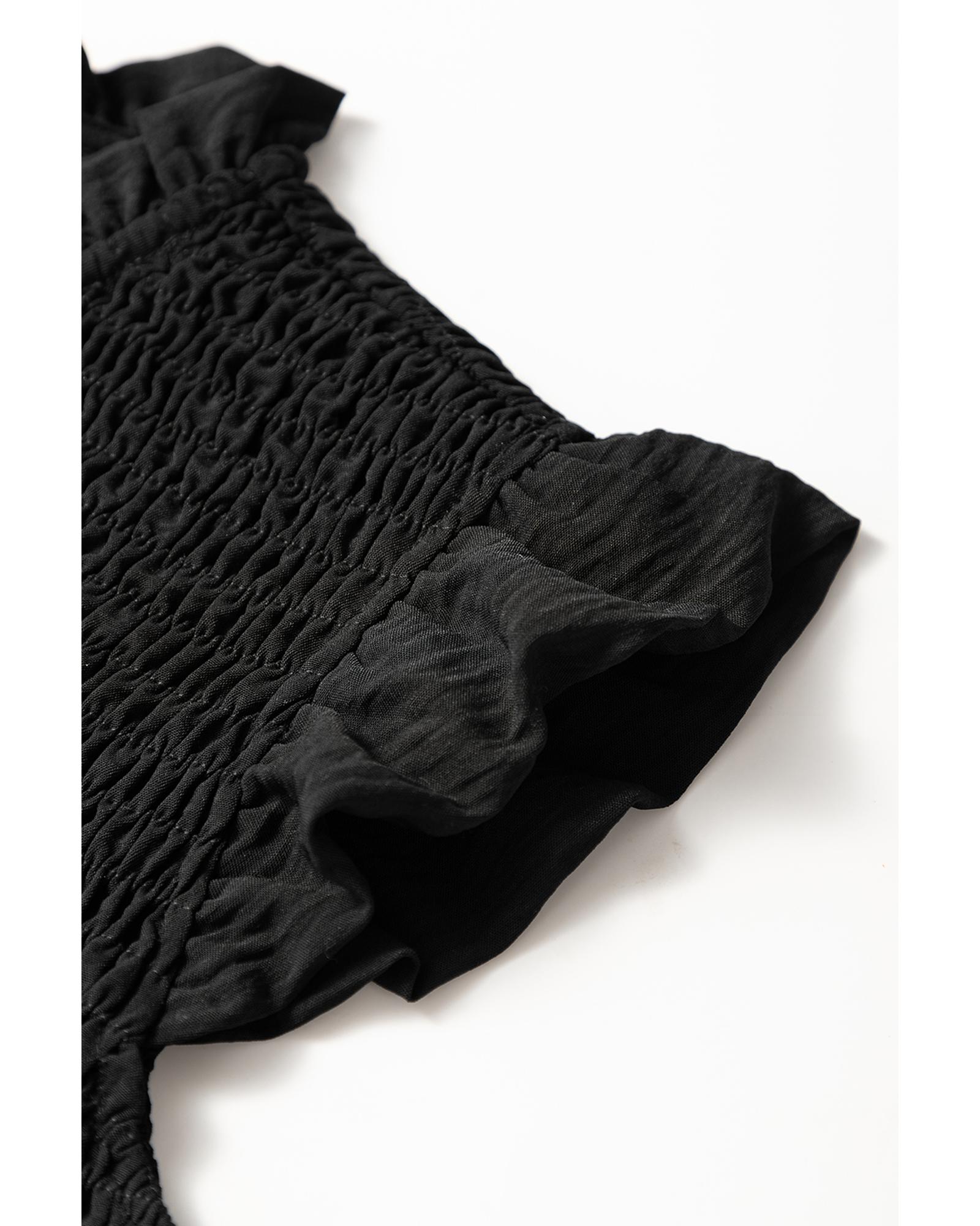 Black Ruffle Short Sleeve Shirred Peplum Top – S