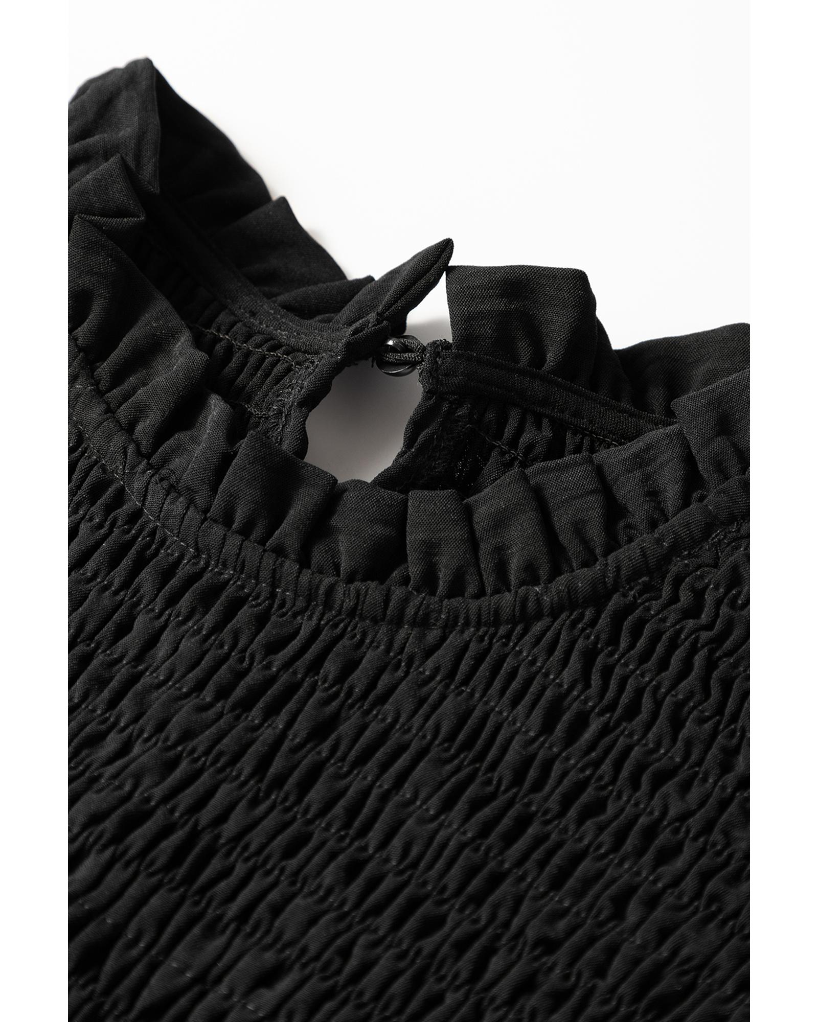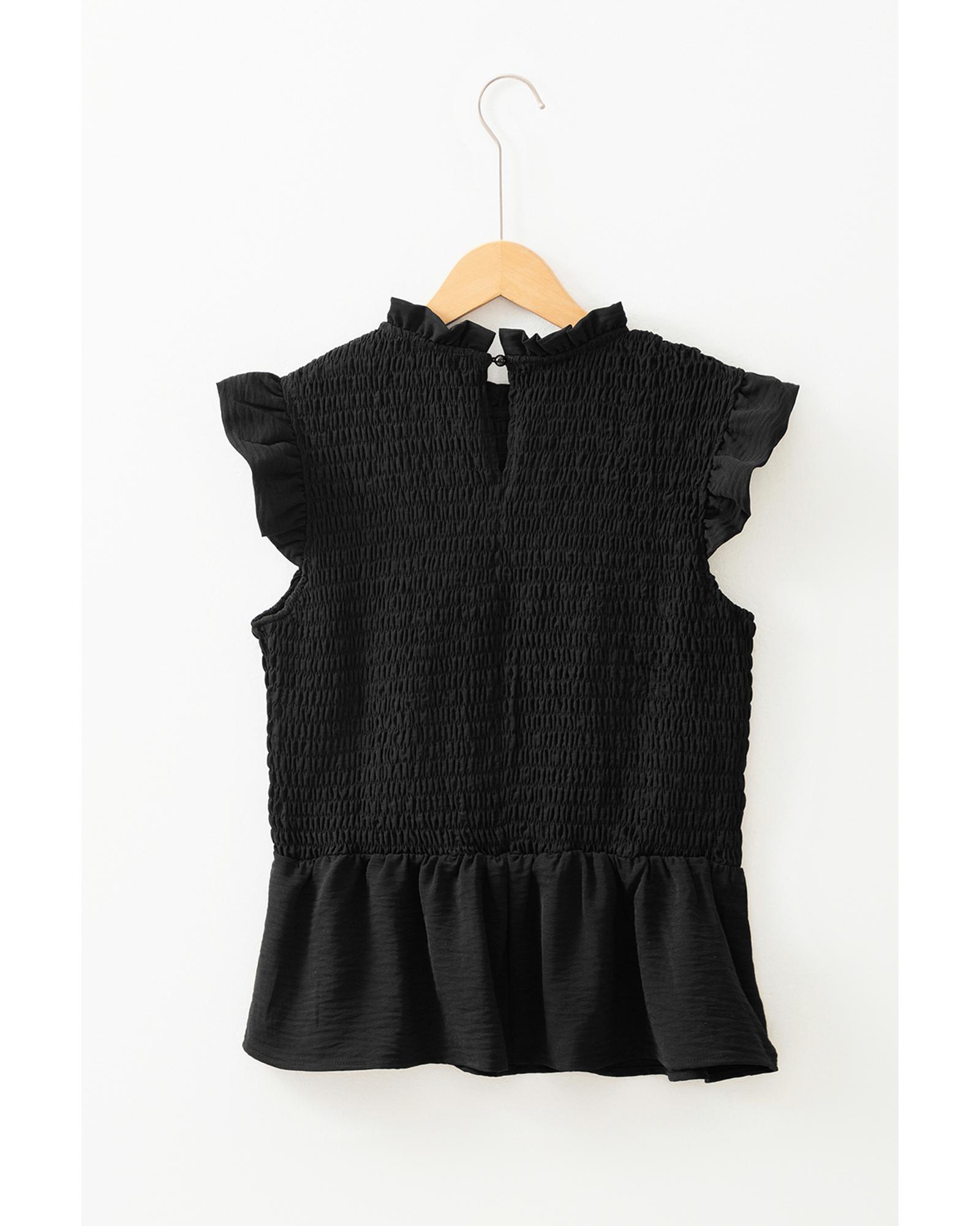 Black Ruffle Short Sleeve Shirred Peplum Top – XL