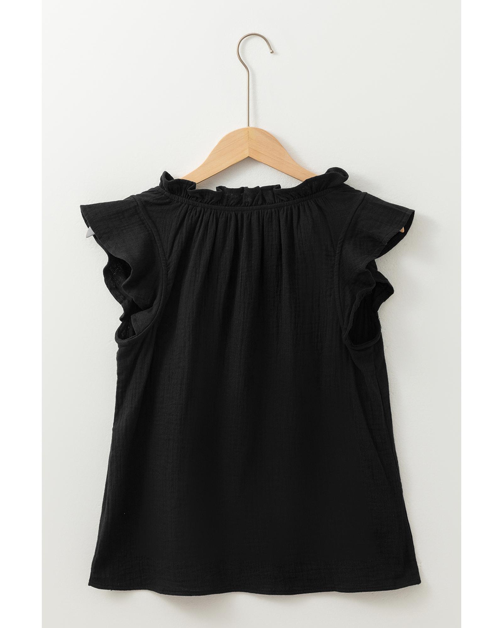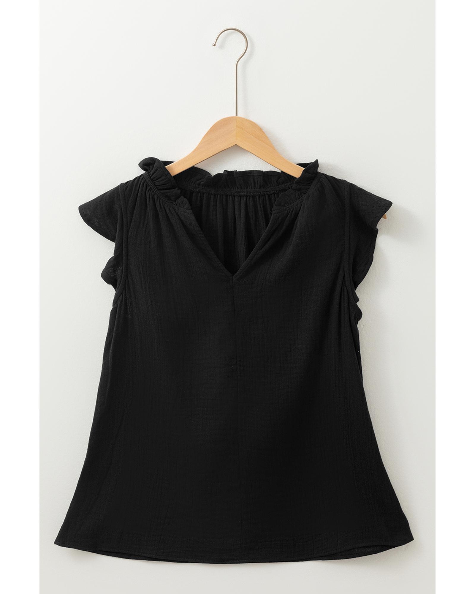 Black Ruffled Shoulder V Neck Shift Tank Top – XL