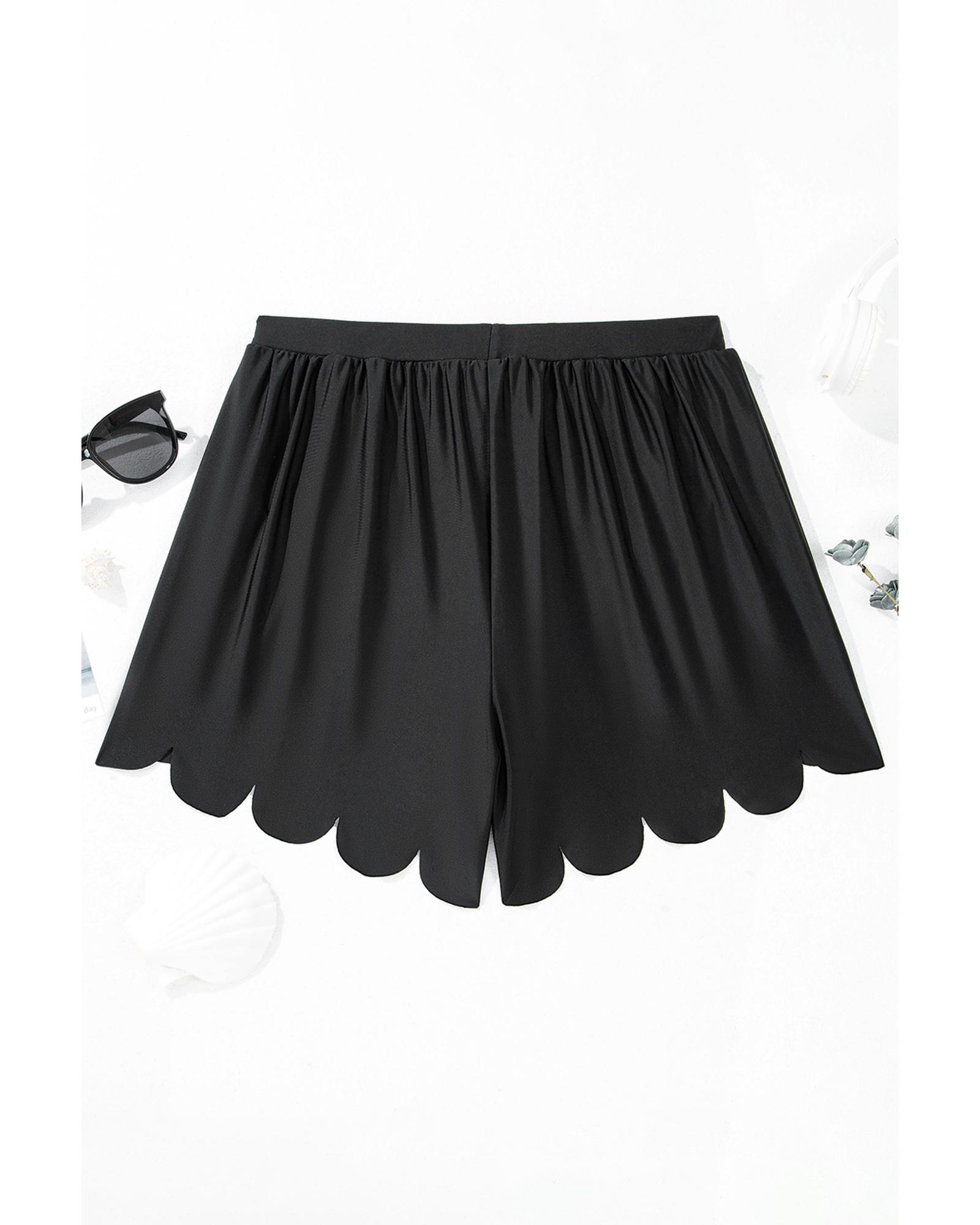 Black Scalloped Trim Beach Shorts – S