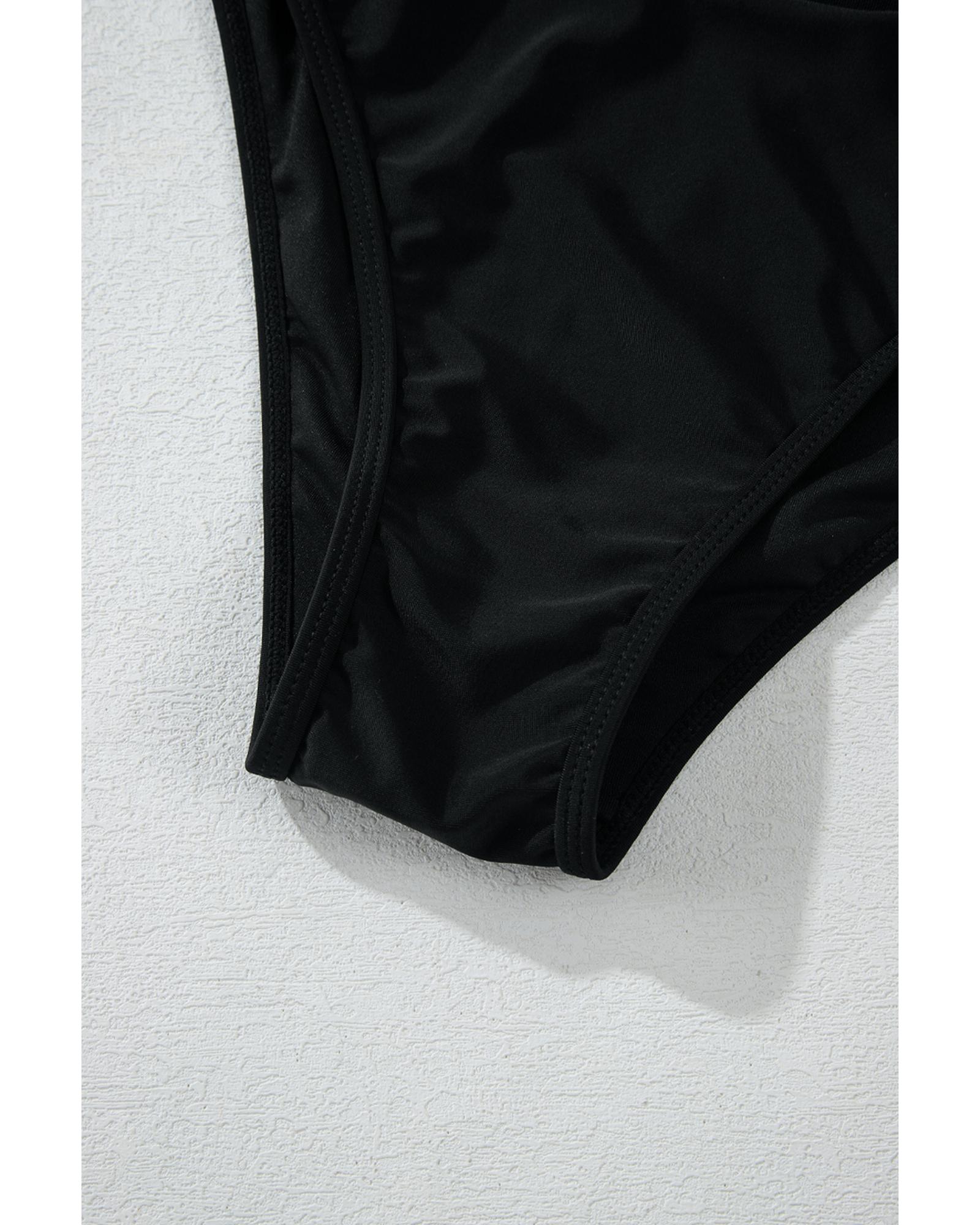 Black Sheer Mesh Edged Halter V Neck Push Up Bikini – 2XL