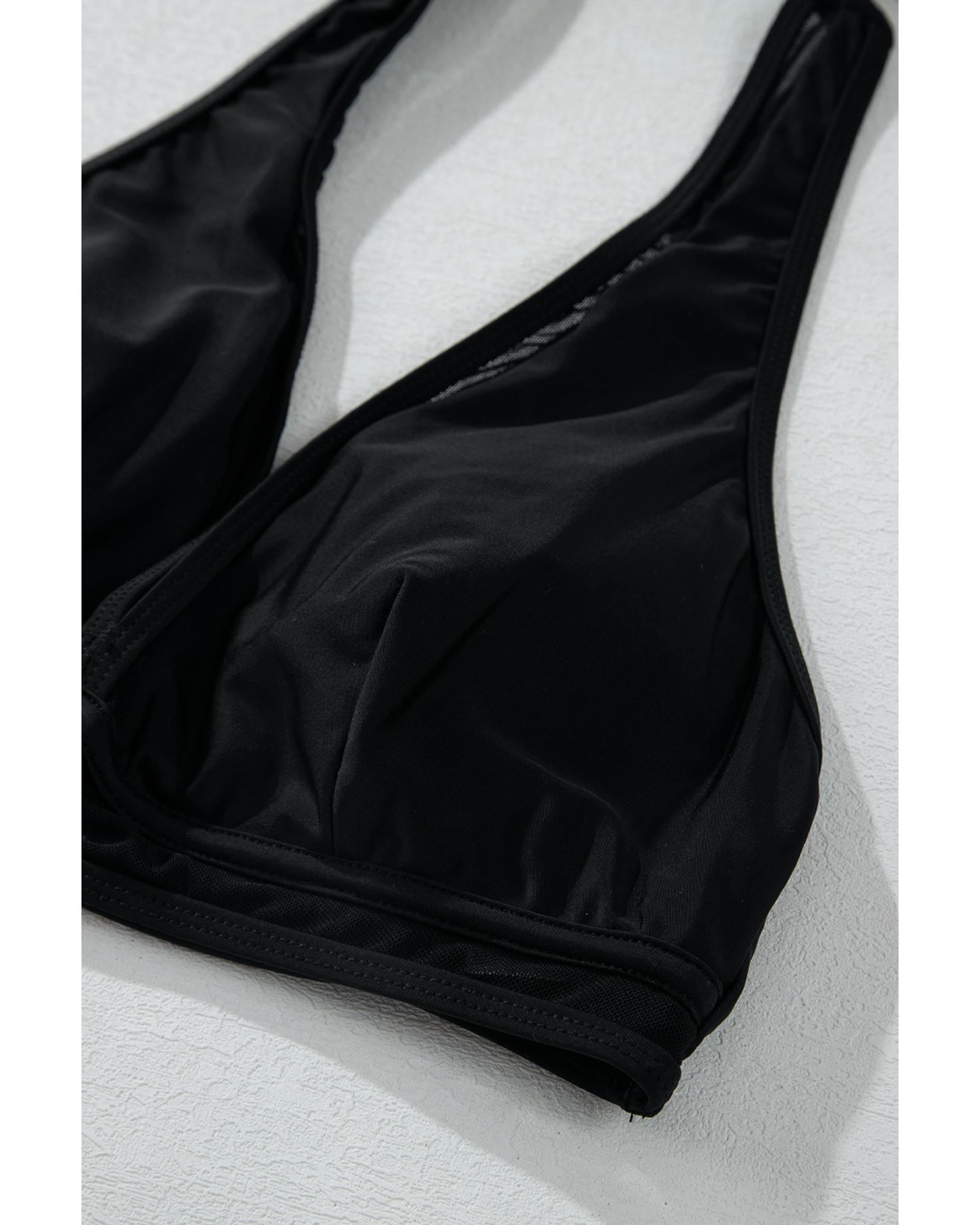 Black Sheer Mesh Edged Halter V Neck Push Up Bikini – S