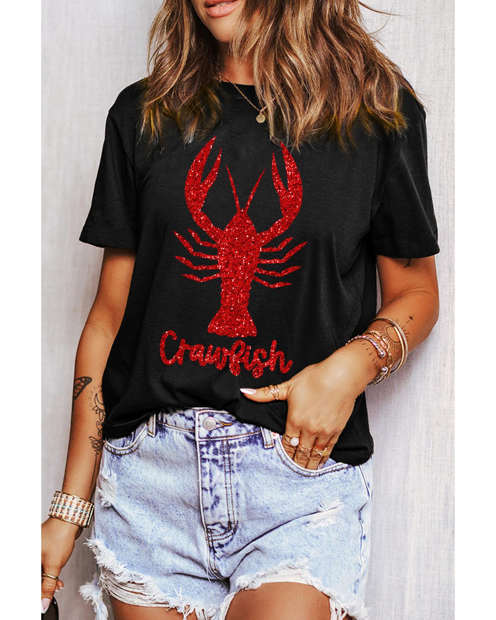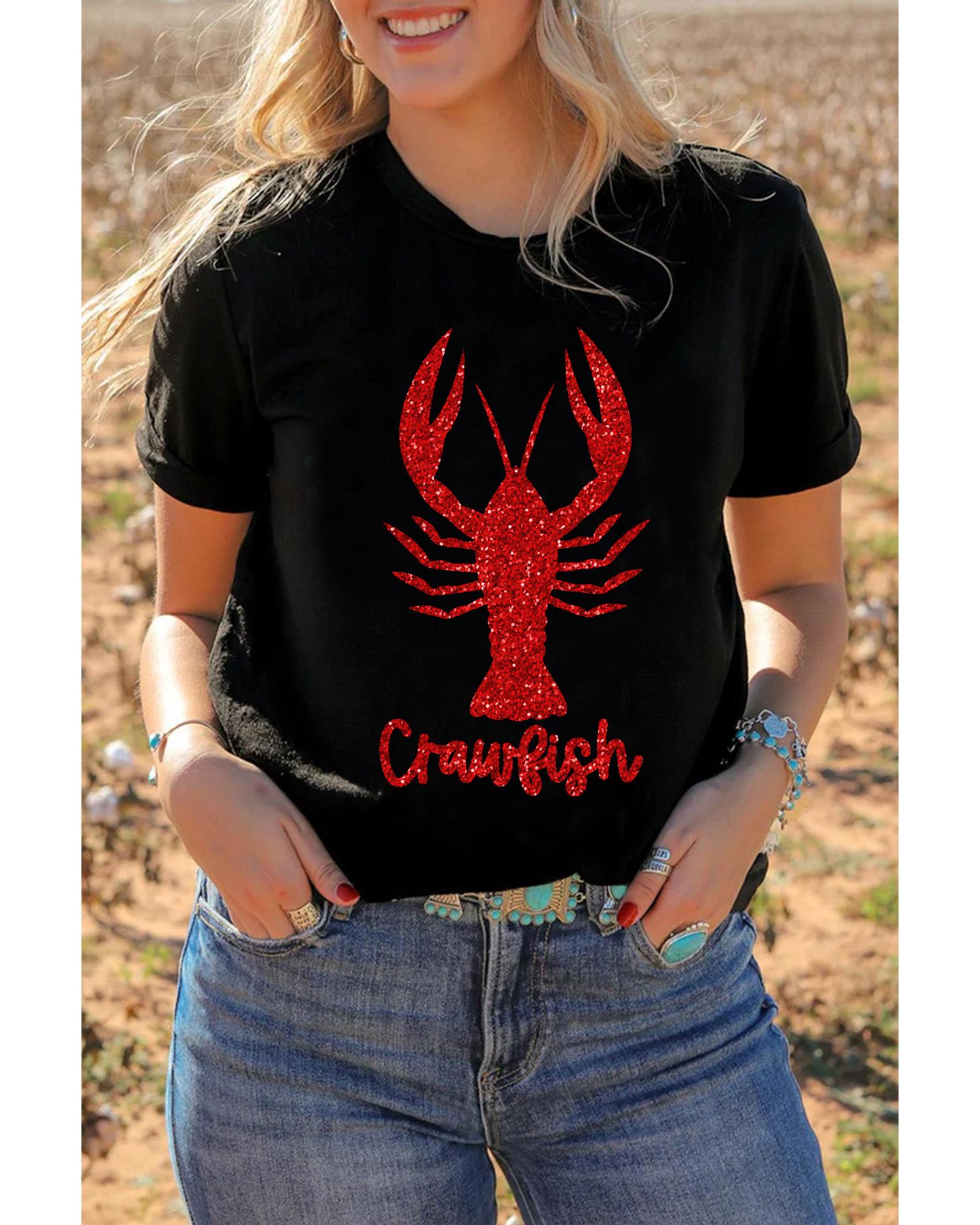 - Black Shimmering Crawfish Graphic Tee