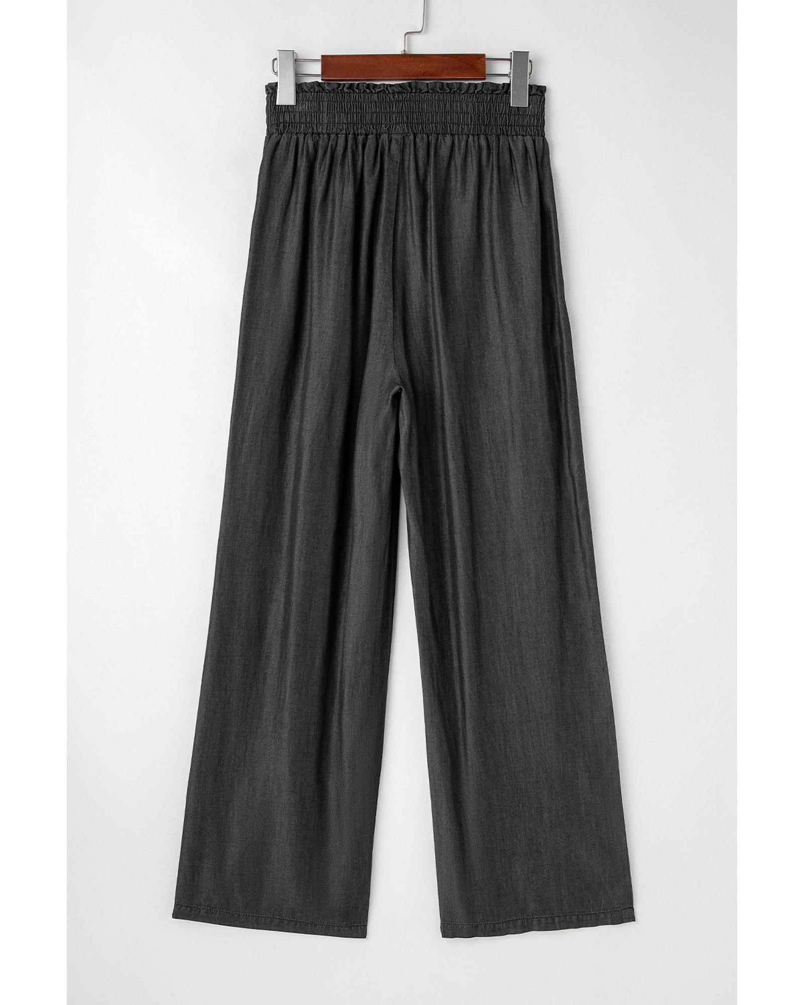Black Side Pockets Frilled Smocked High Waist Wide Leg Jeans – 2XL