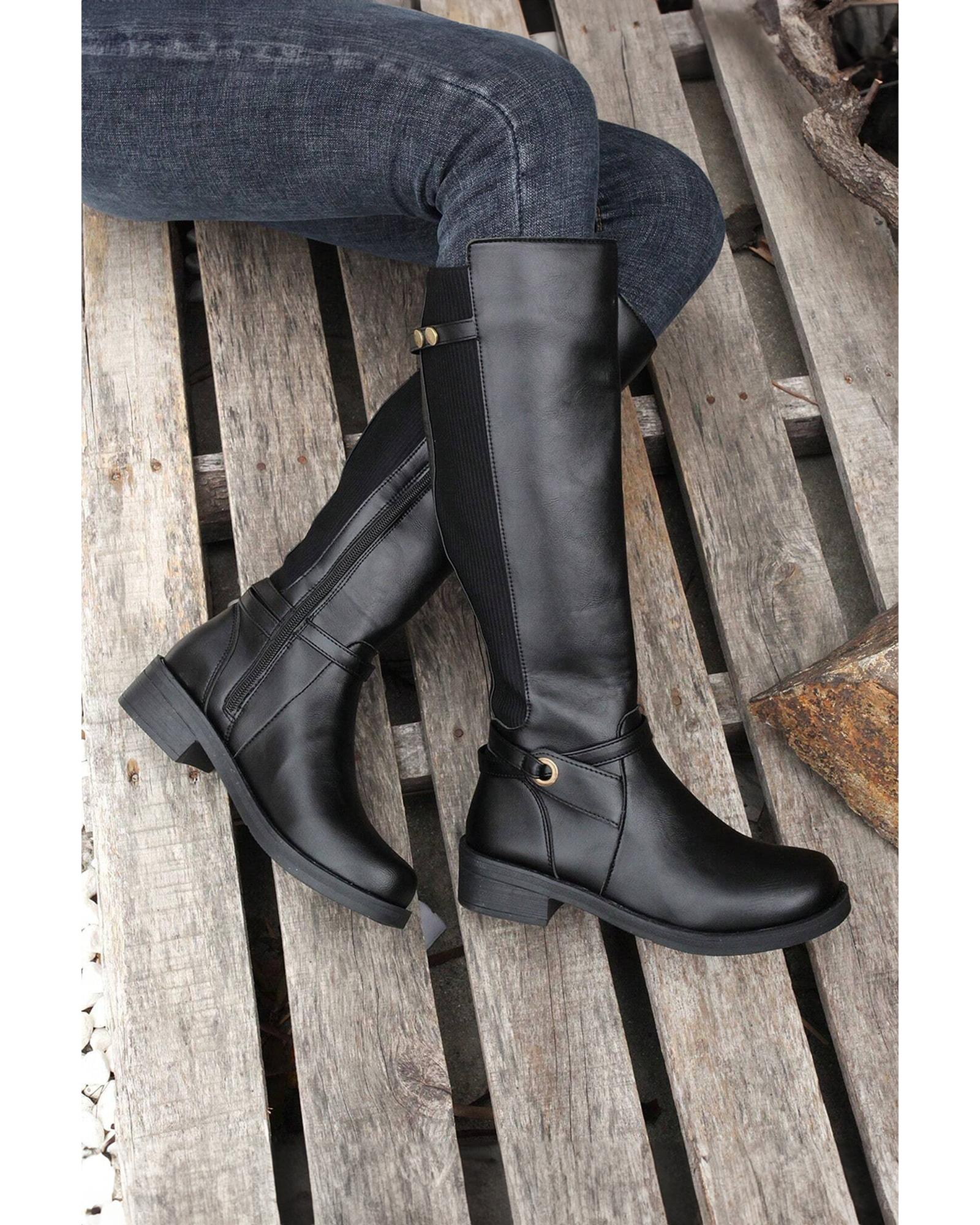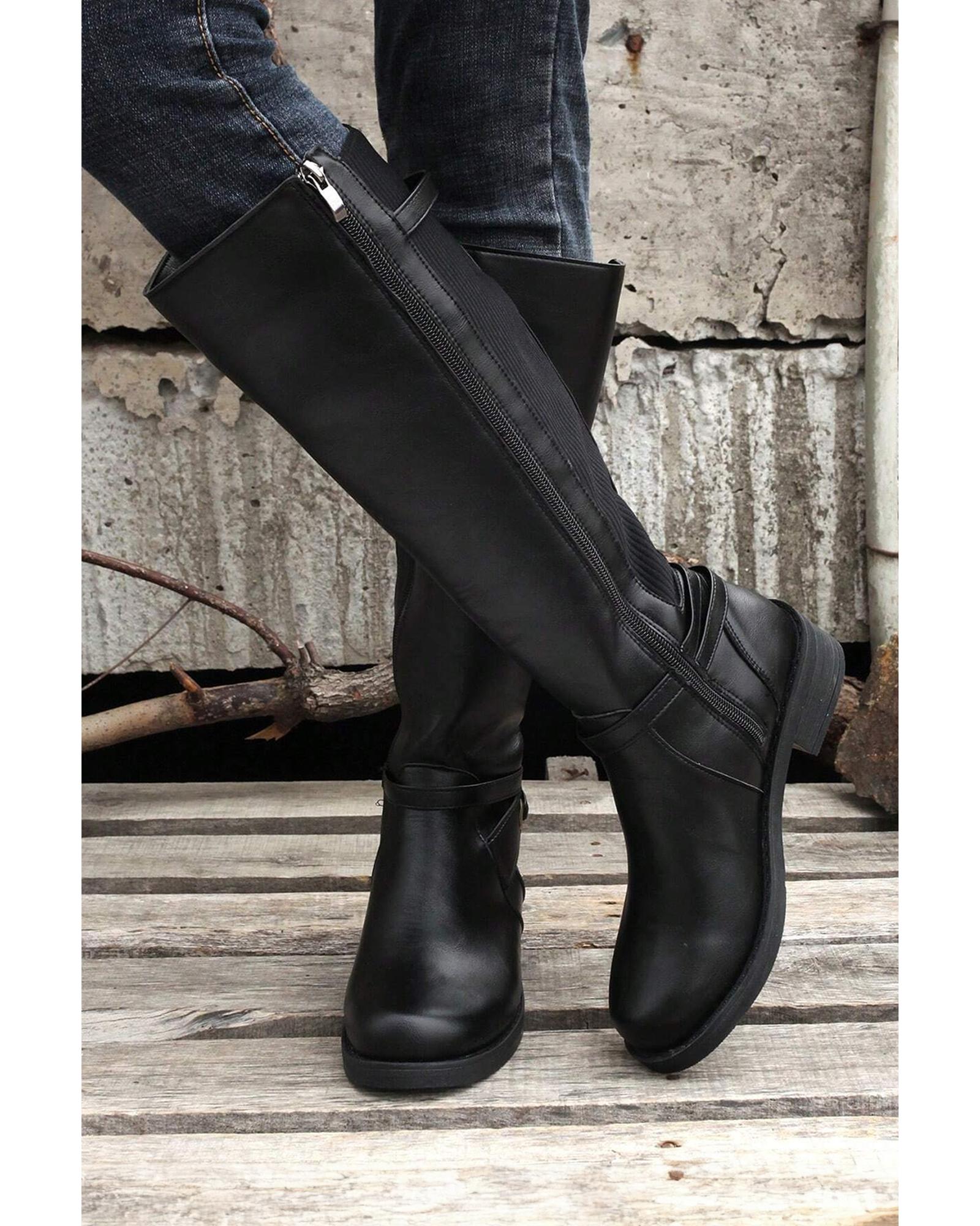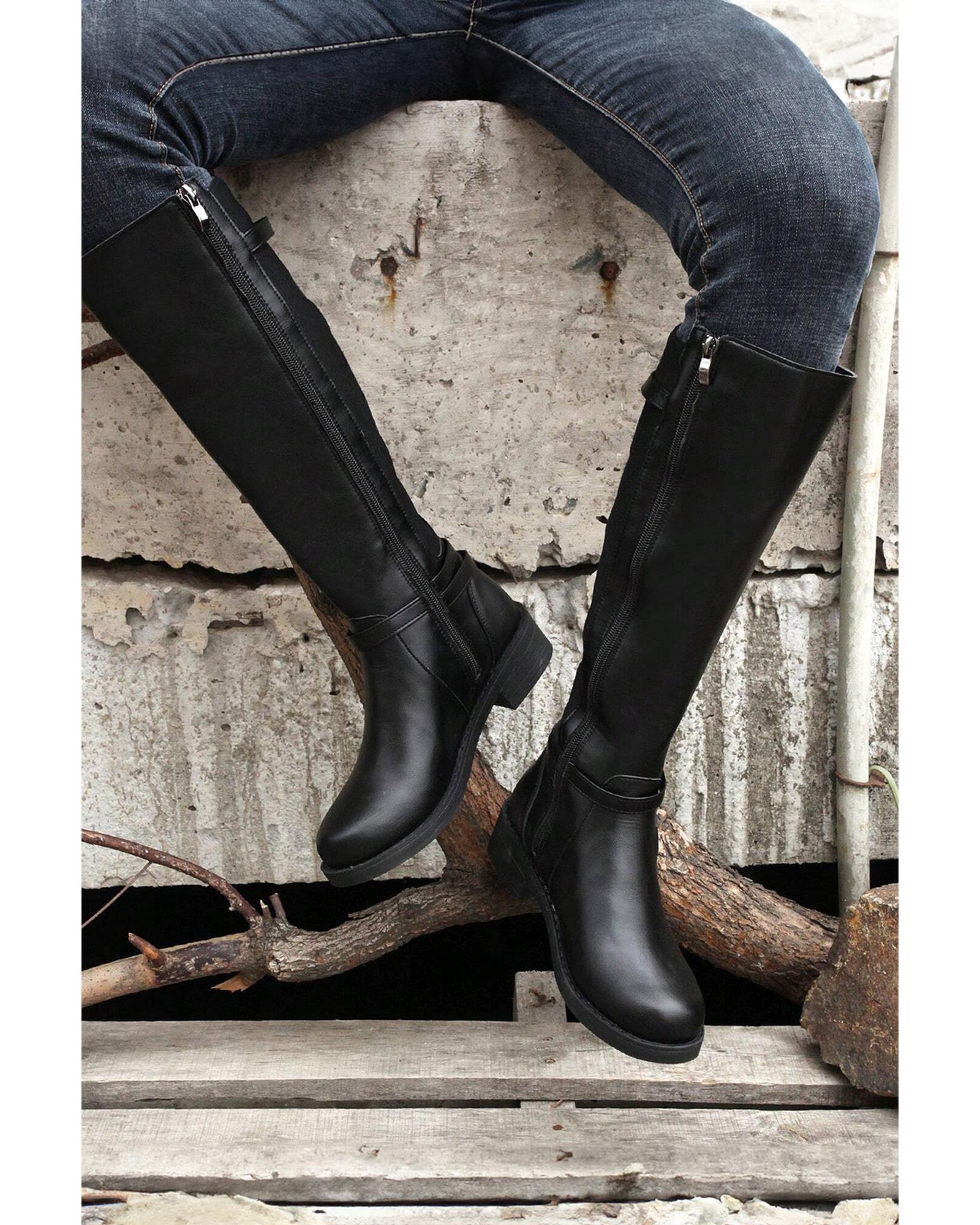 Black Side Zipper Knee High Chunky Low Heel Boots – 37 EU