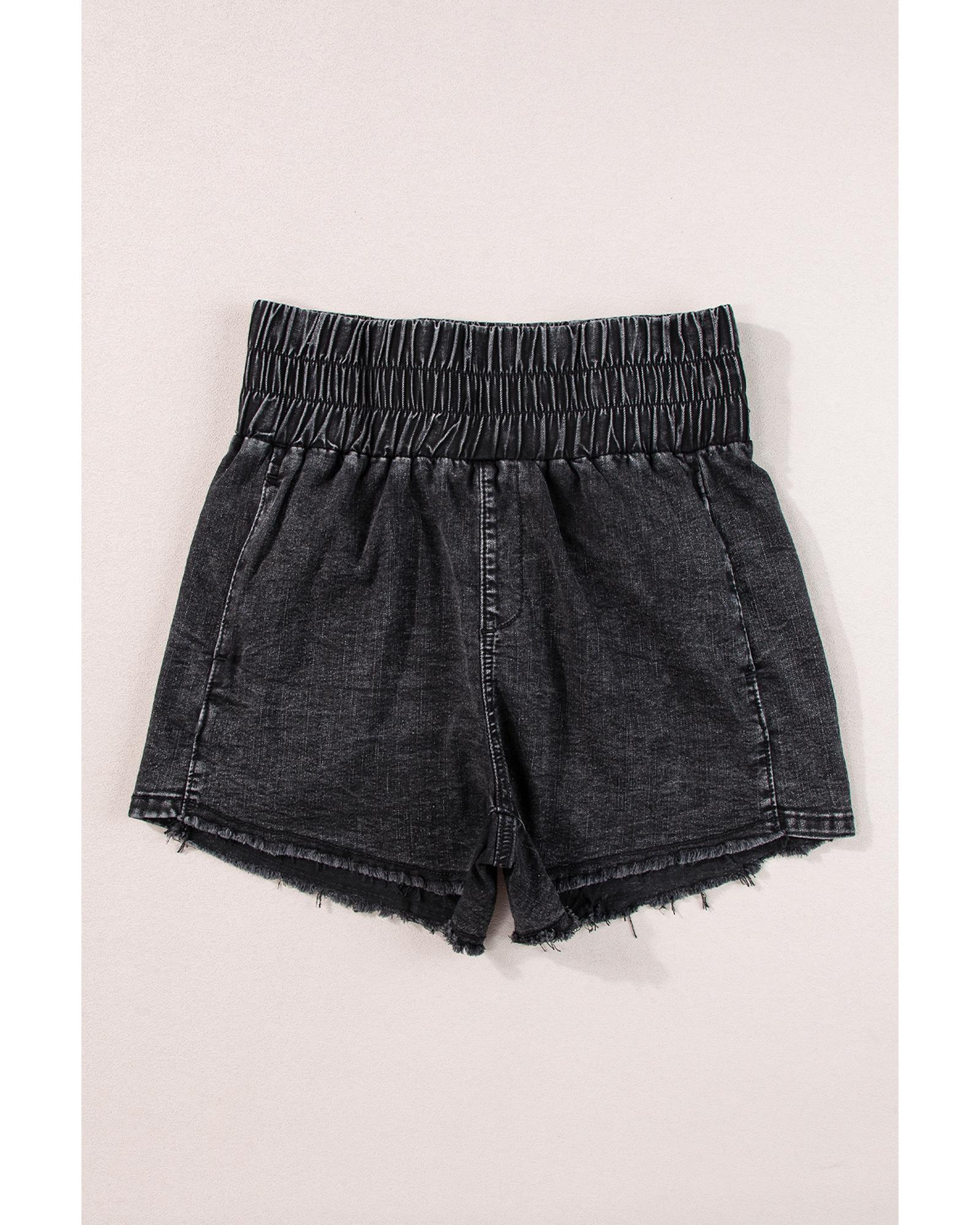 Black Smocked High Waist Mineral Washed Jean Shorts – 16 US