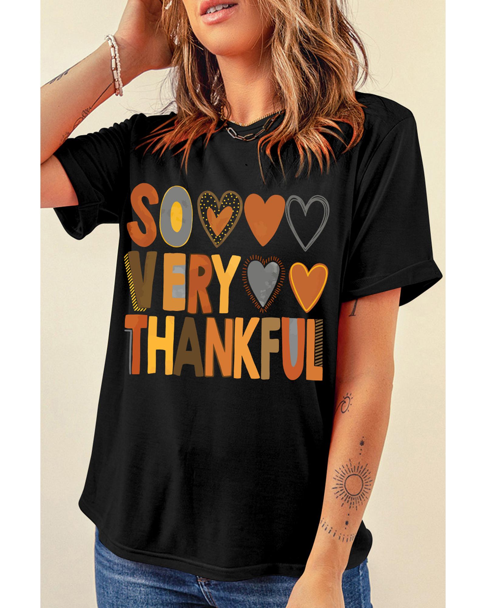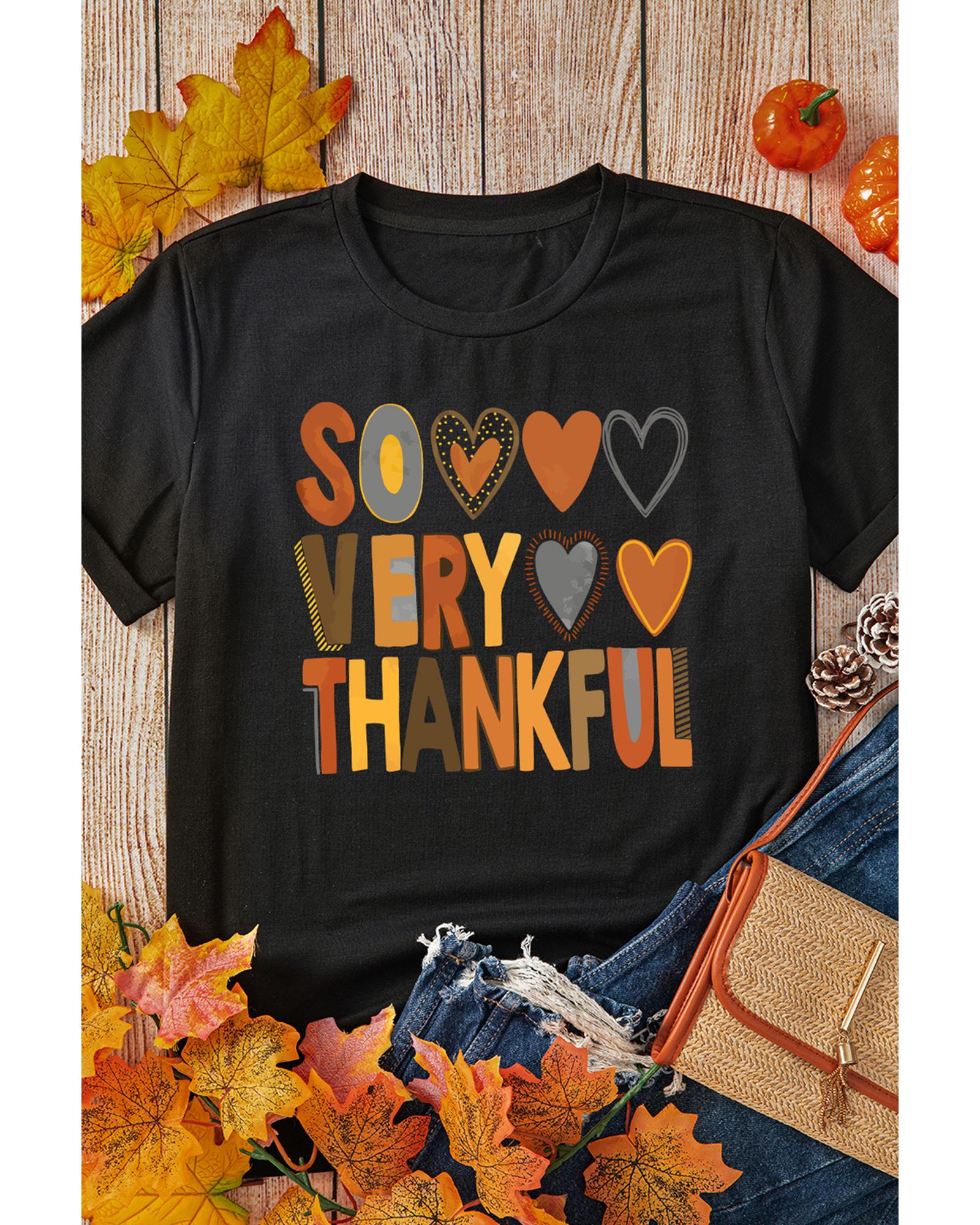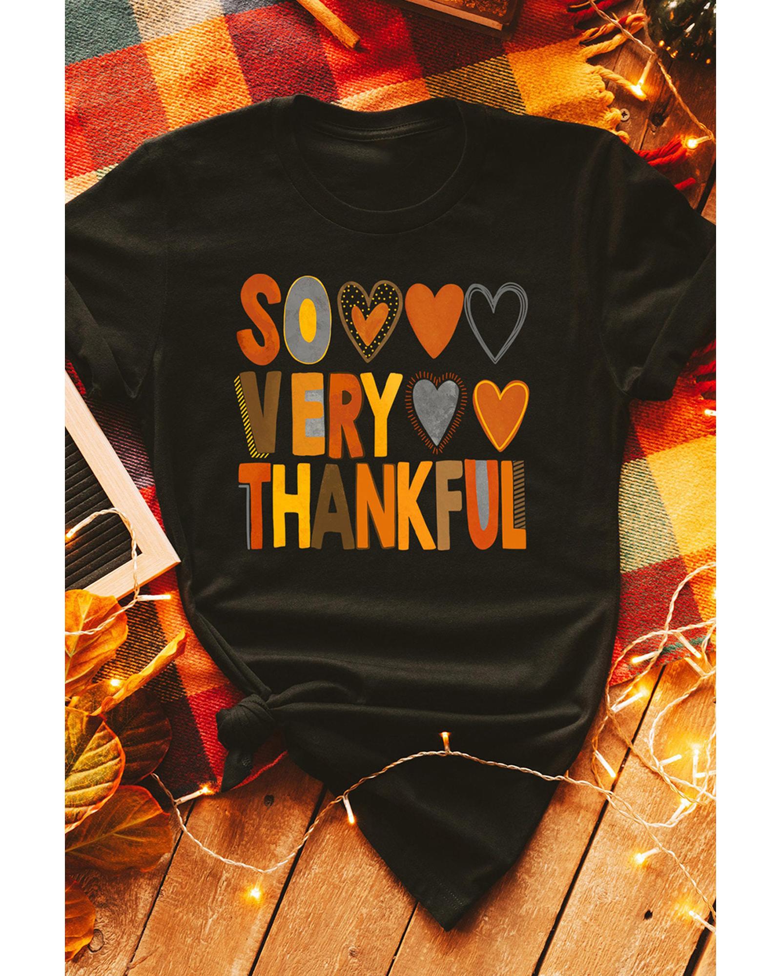 Black So Very Thankful Heart Printed Crewneck Thanksgiving T Shirt – 2XL