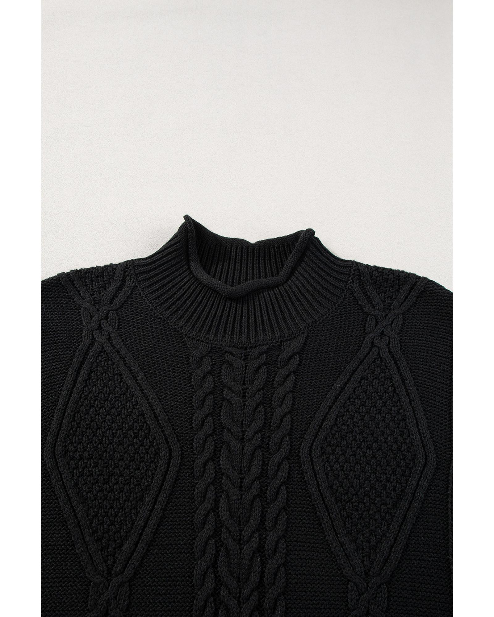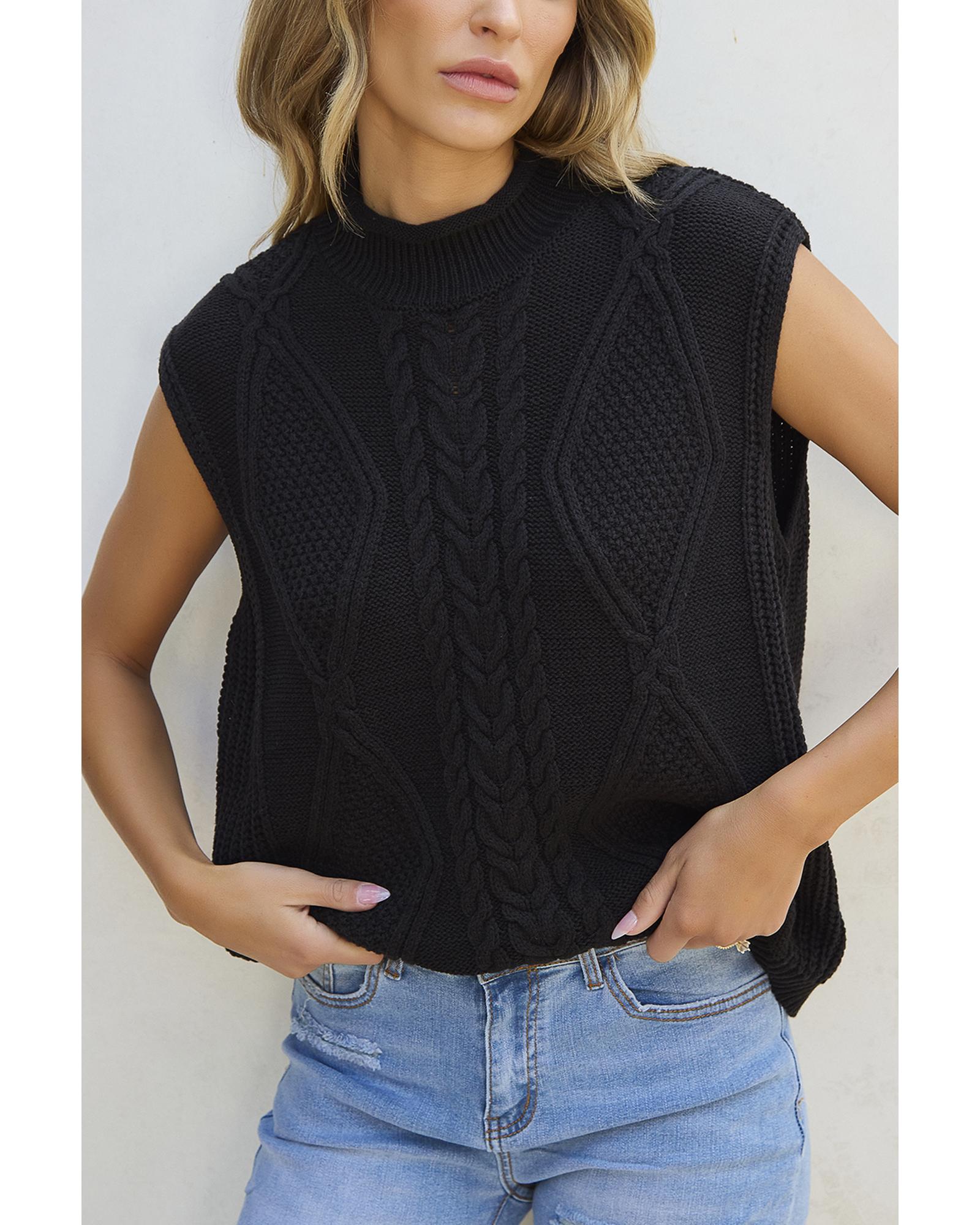 Black Solid Color Cable Knit High Neck Sweater Vest – L