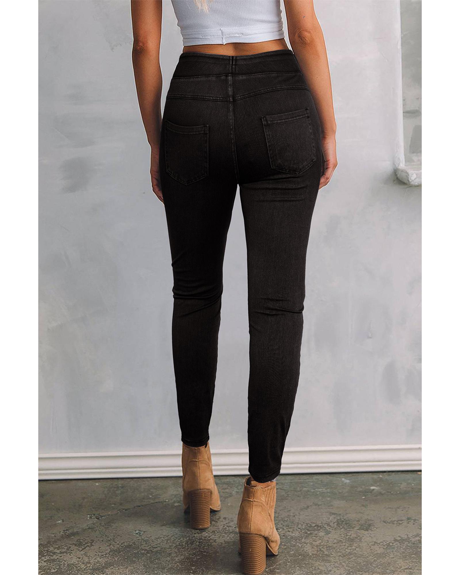 Black Solid Color High Waist Stretchy Slim Fit Jeggings – M