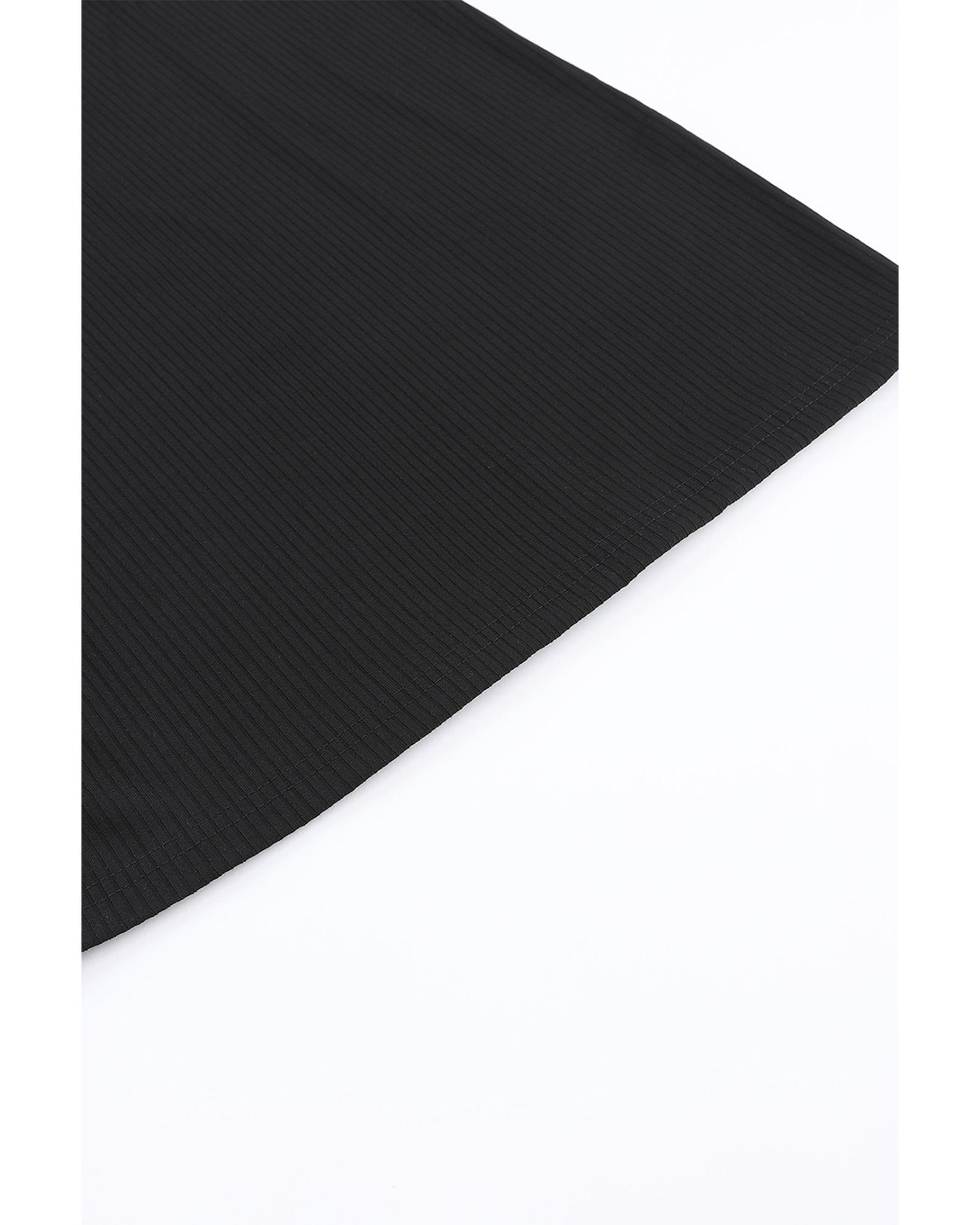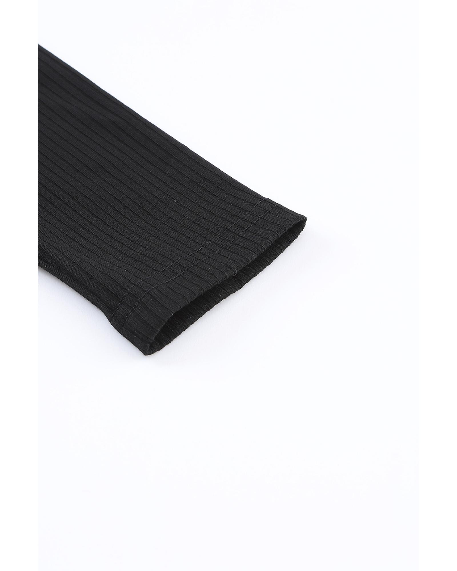 Black Solid Color Ribbed Crop Top Long Pants Set – L