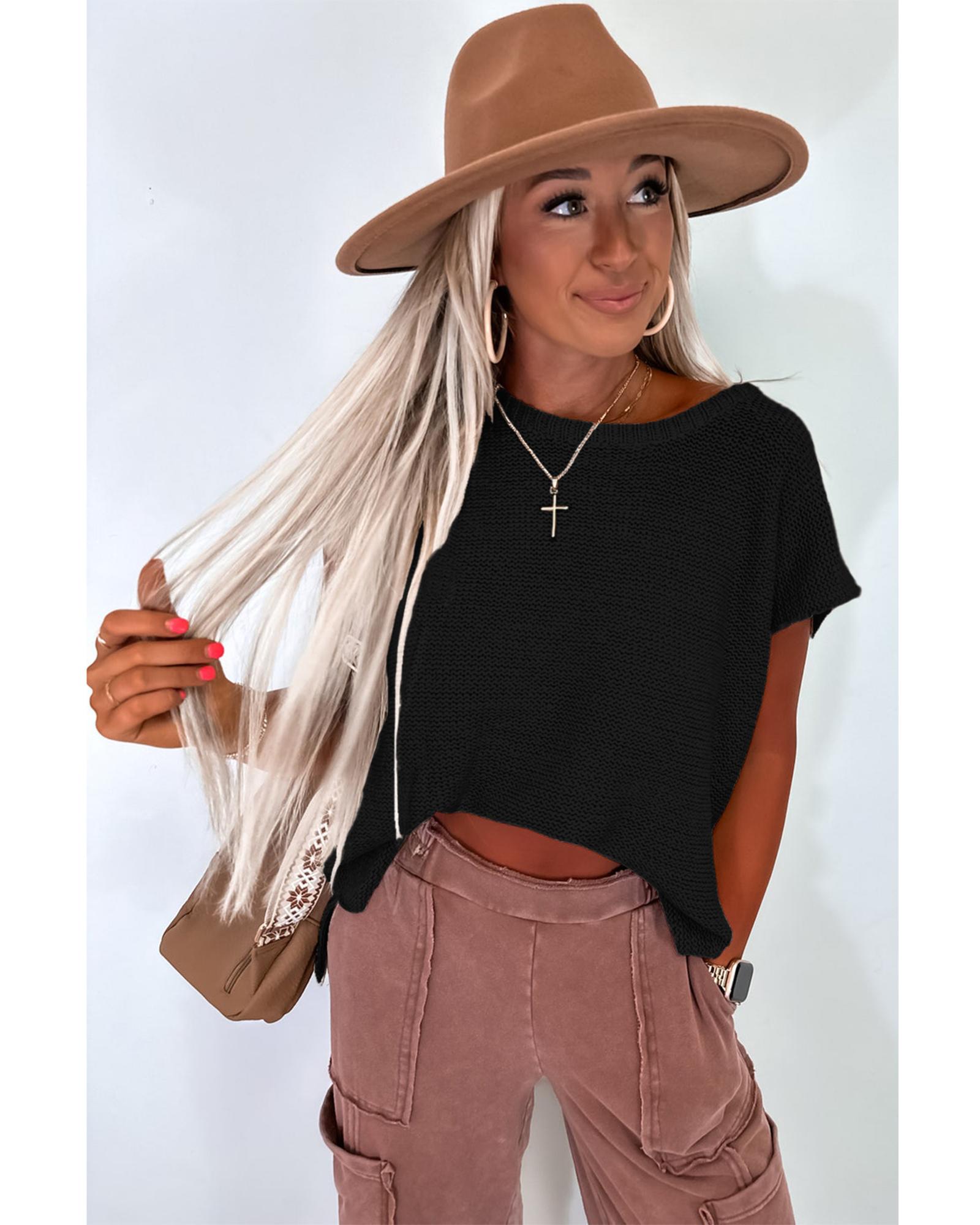 Black Printed Striped Printed Slit Wide Leg High Waist Pants - L