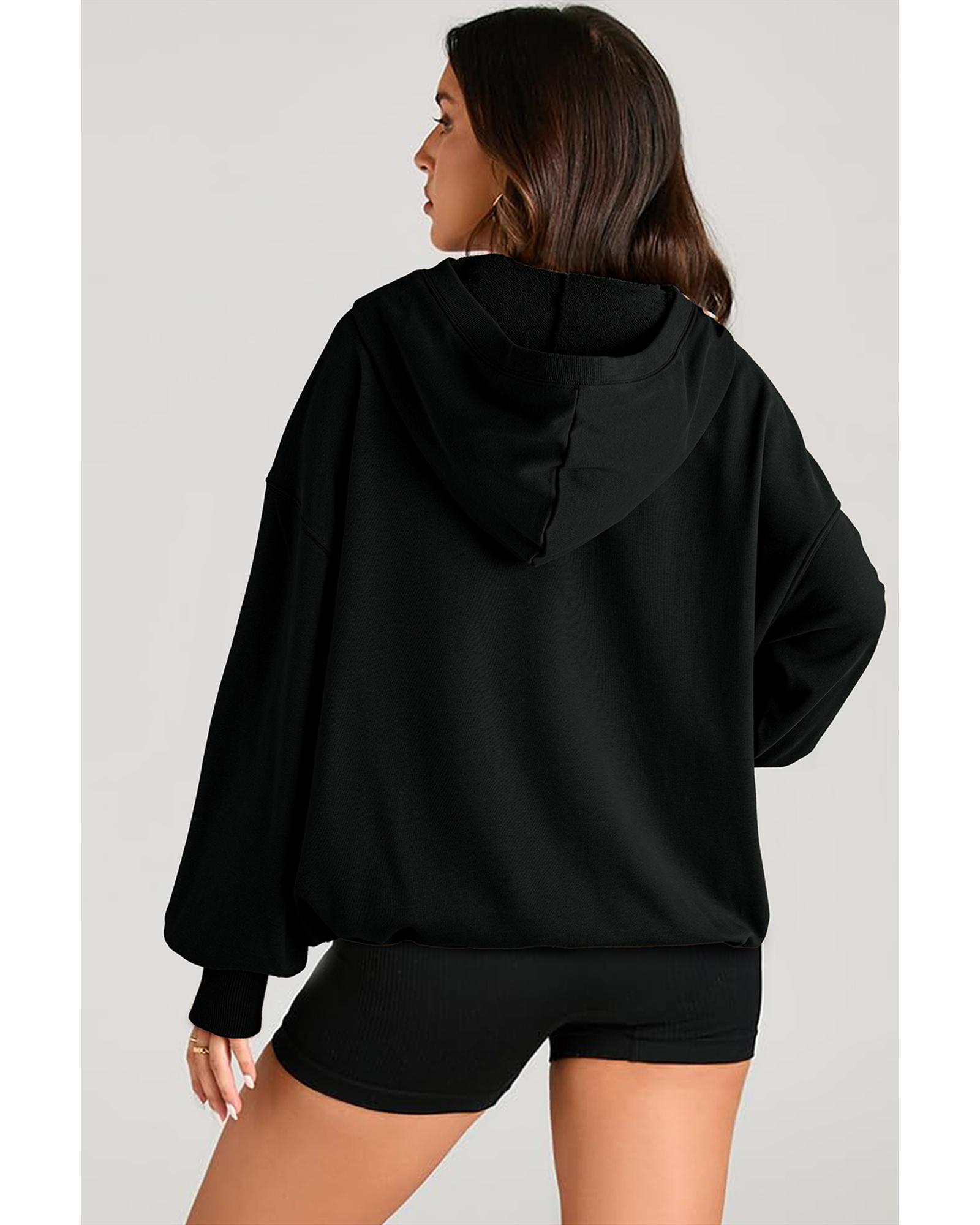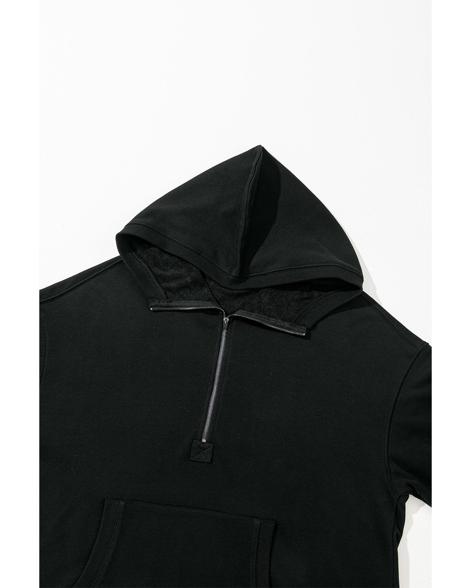 Black Solid Kangaroo Pocket Half Zipper Oversized Hoodie – 2XL