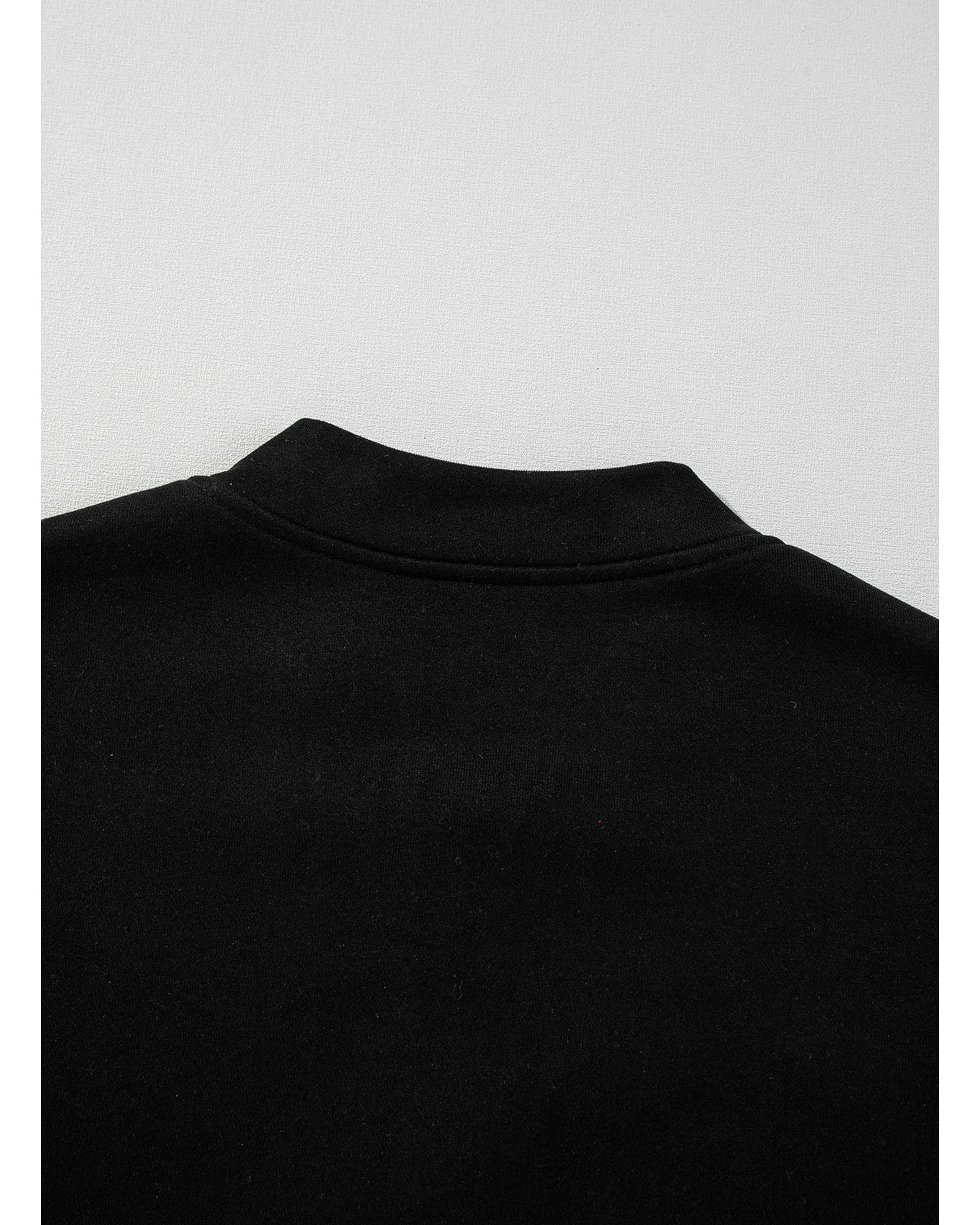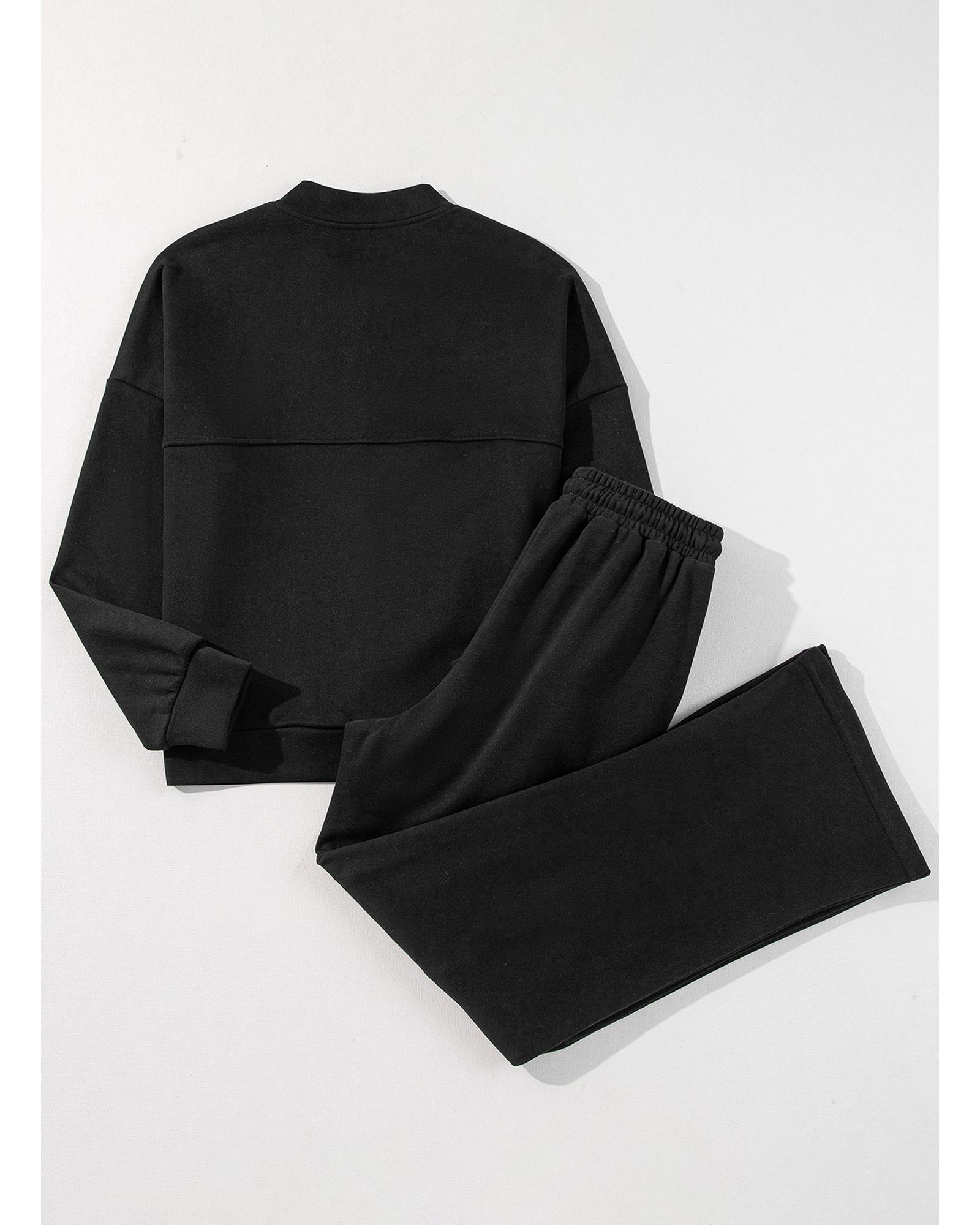 Black Solid Seamed Zipper Jacket and Drawstring Waist Pants Set – XL