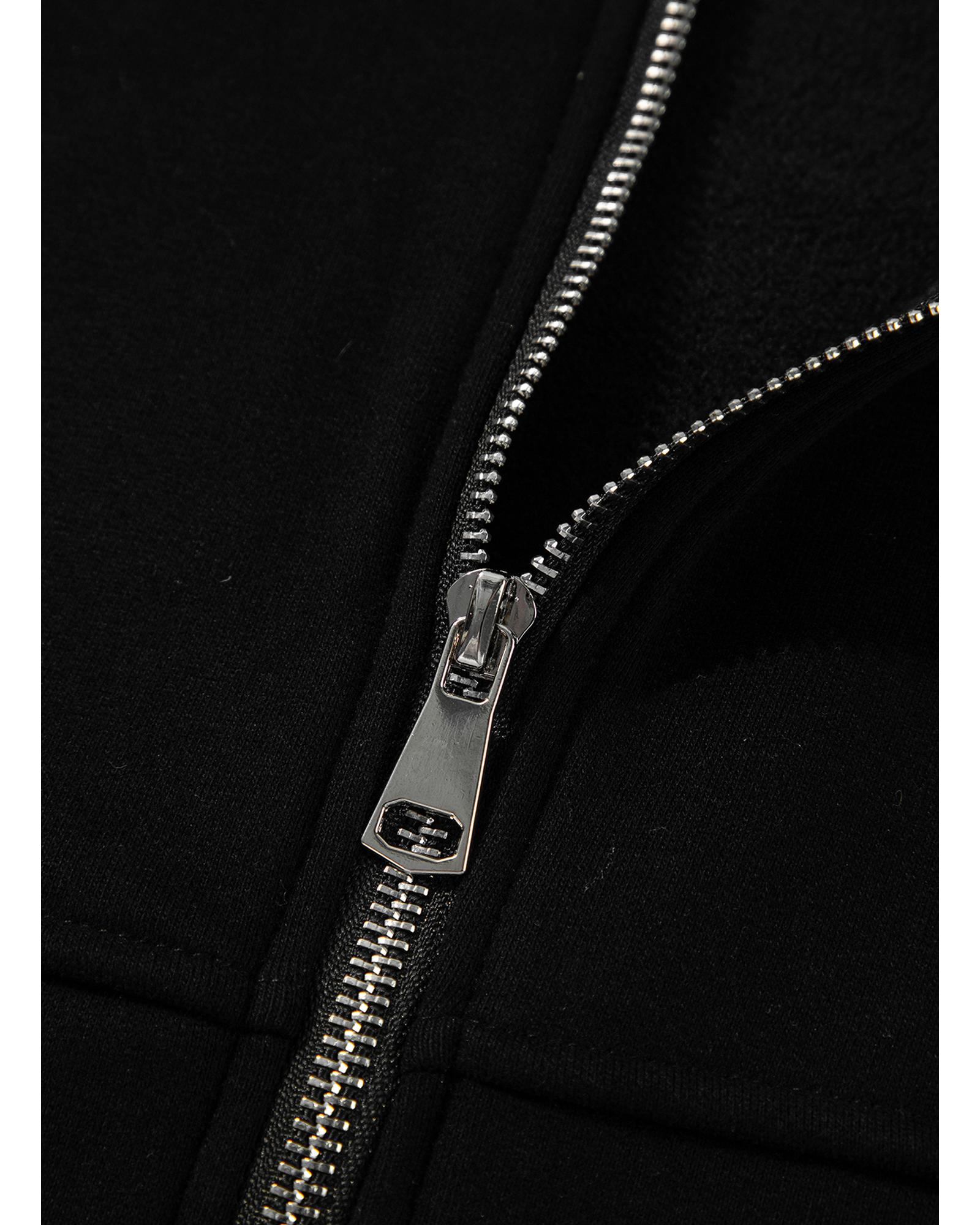 • Black solid seamed zipper jacket and drawstring waist pants set