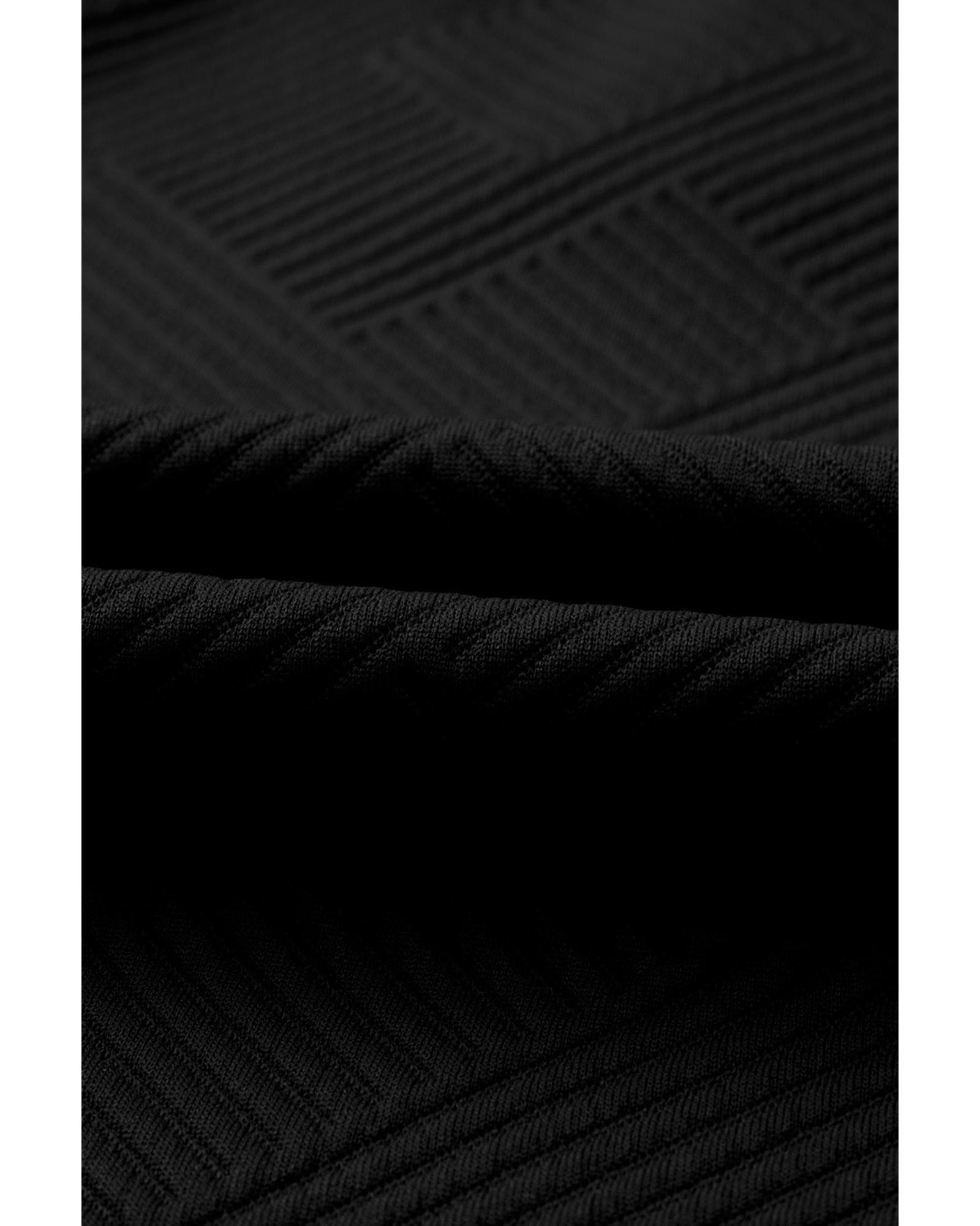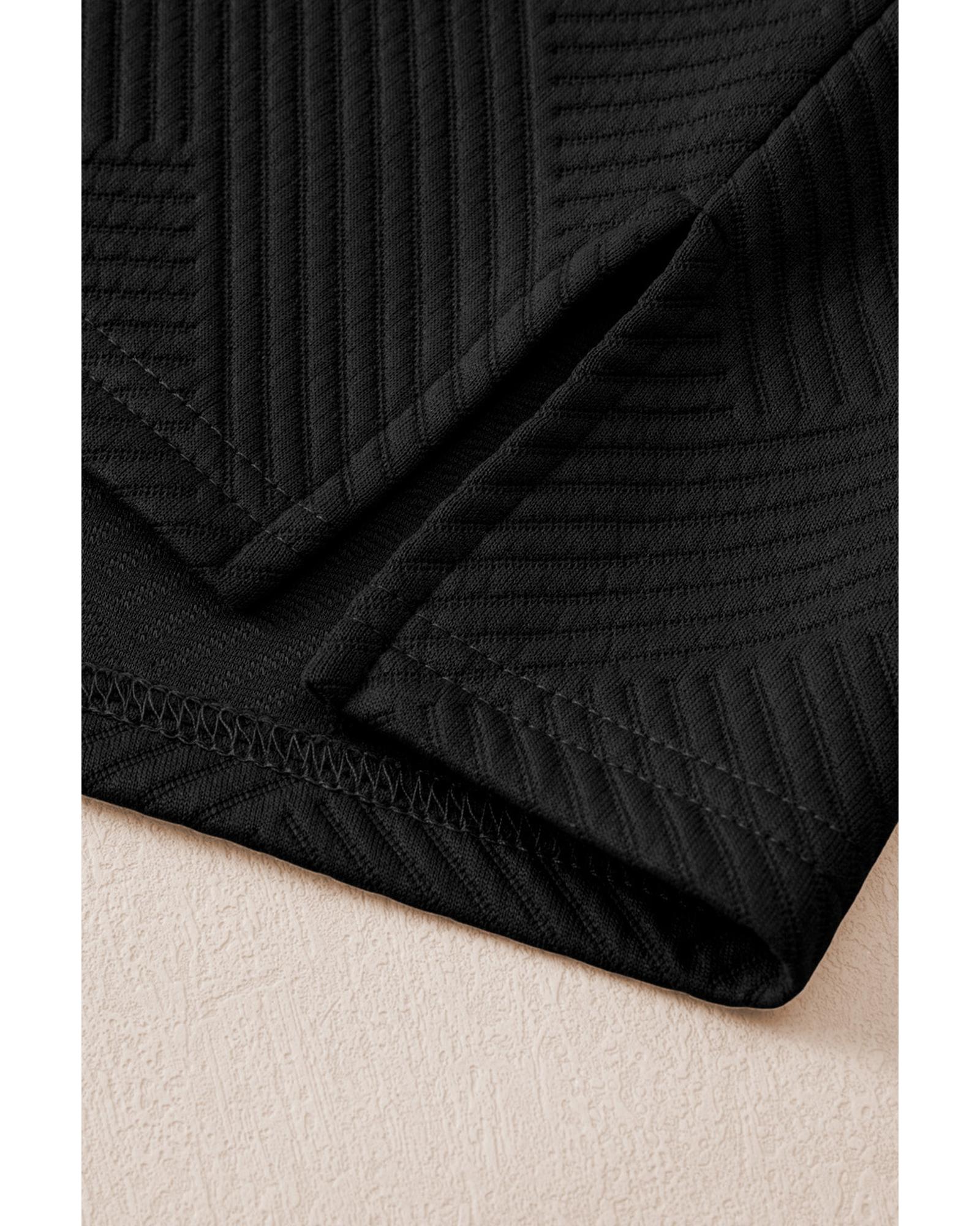 Black Solid Textured Collared V Neck Top and Wide Leg Pants Set – 2XL